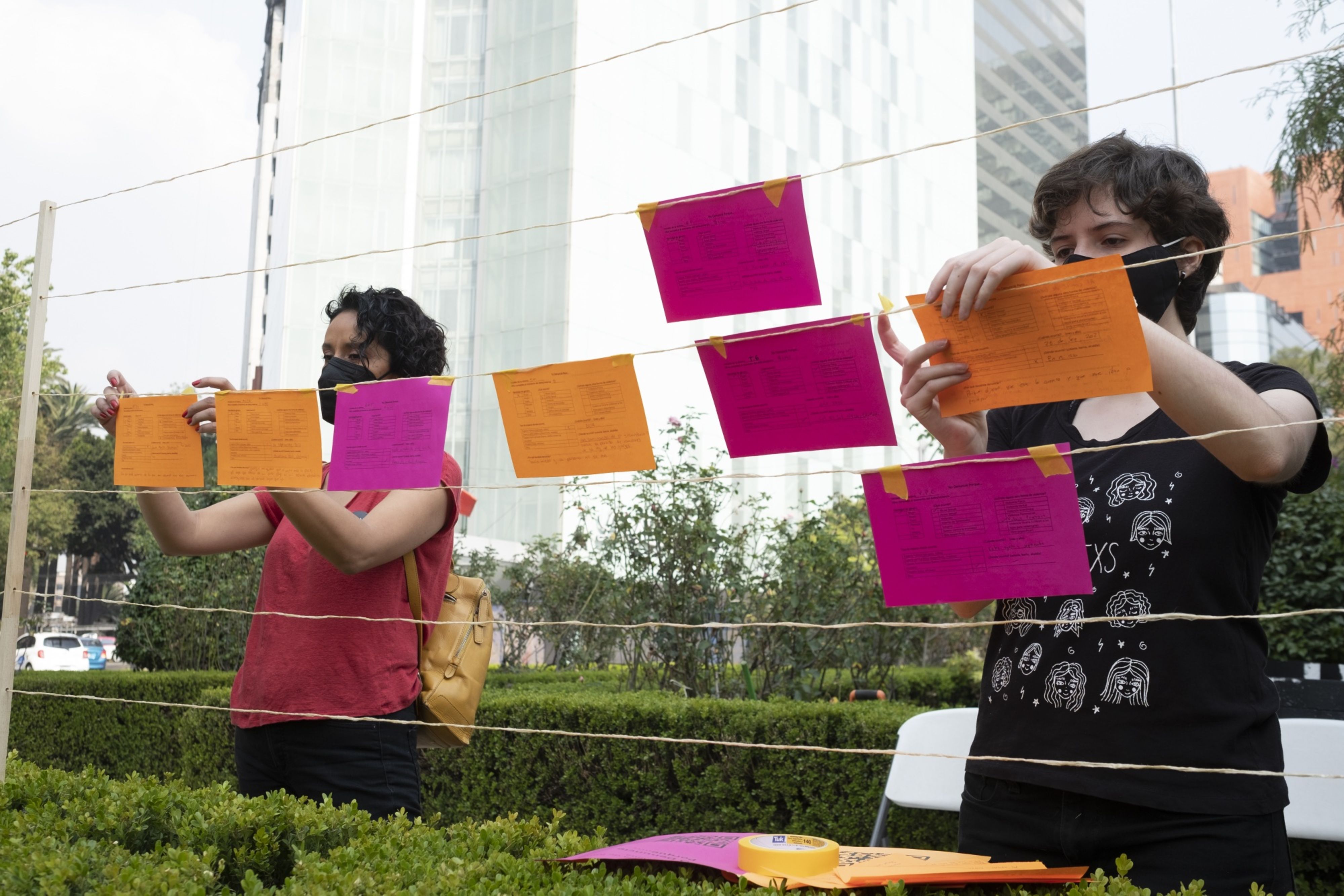 然而,反纪念碑和其他团体捍卫了他们的作品。在11月25日国际反暴力日,REDIGE,一个与性别暴力作斗争的非营利组织,在环形广场聚集,挂起一条晾衣绳,供妇女别住那些未能保护她们的法官、检察官和其他司法系统人员的名字。当一场游行经过国家宫殿时,成千上万的人停下来为那些已经离去的人唱一首抗议歌曲。第二天,警察试图拆除现在贴满妇女名字的保护性金属墙,但在一系列社交媒体帖子和新闻报道谴责他们的行动后停了下来。