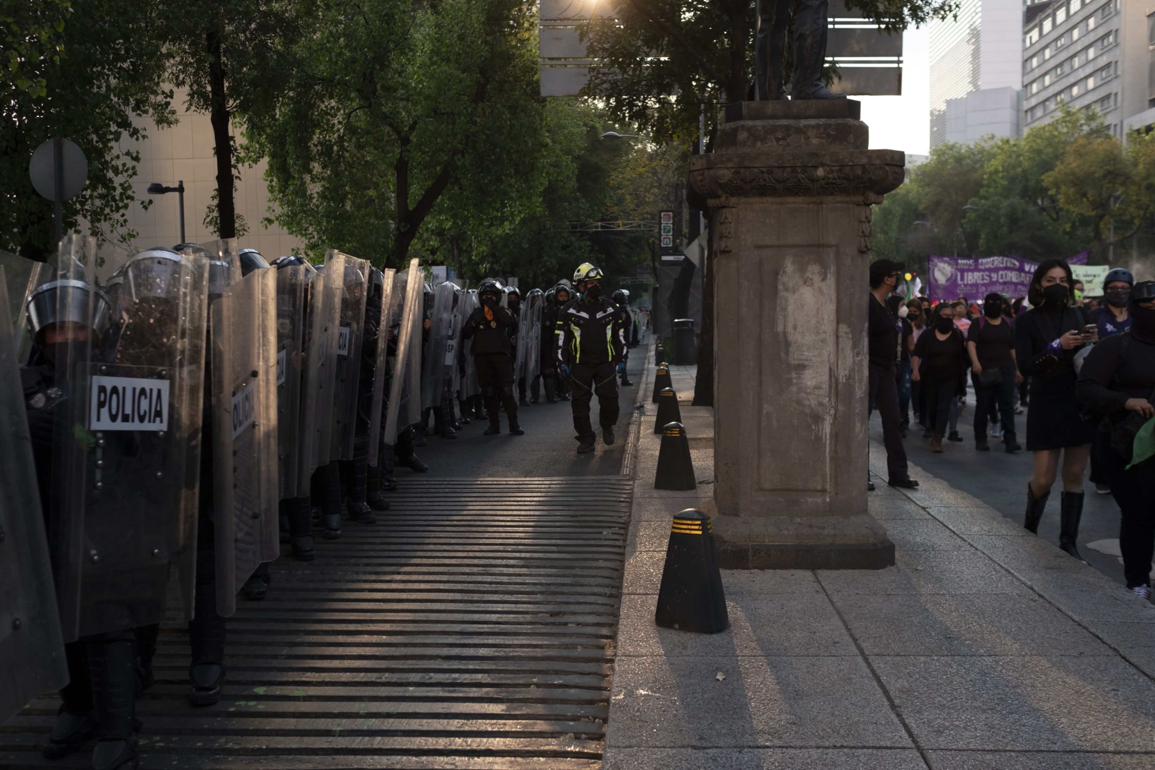 墨西哥城警察局未回应置评请求。但科林否认有任何滥用行为。她说:“从来没有任意拘留,从来没有对抗议者采取暴力行为。”“这只是政府履行保护所有人生命的义务。”她说,这包括保护执法人员:根据城市官员的说法,2021年一次重要游行中,有19名抗议者和62名警察受伤。