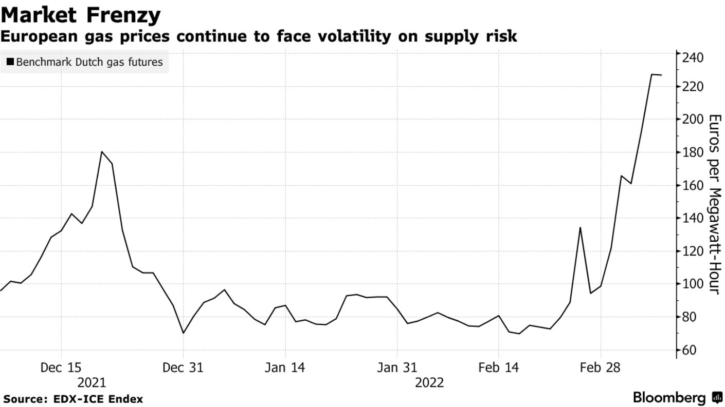 欧洲天然气价格在俄罗斯威胁要切断对欧洲供应以报复制裁后,出现了剧烈波动。
