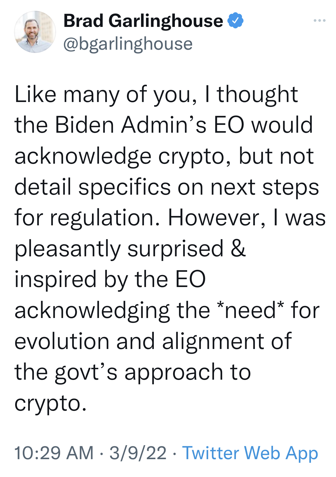尽管如此,加密货币社区对此的初步反应是非常积极的。行业领袖表示,他们对白宫承认数字资产潜在好处 — 而不仅仅是风险 — 以及其表示愿意与私营部门合作解决命令中提出的问题感到鼓舞。然而,这种狂喜并没有持续多久:在命令发布消息后一天,比特币大幅回落。