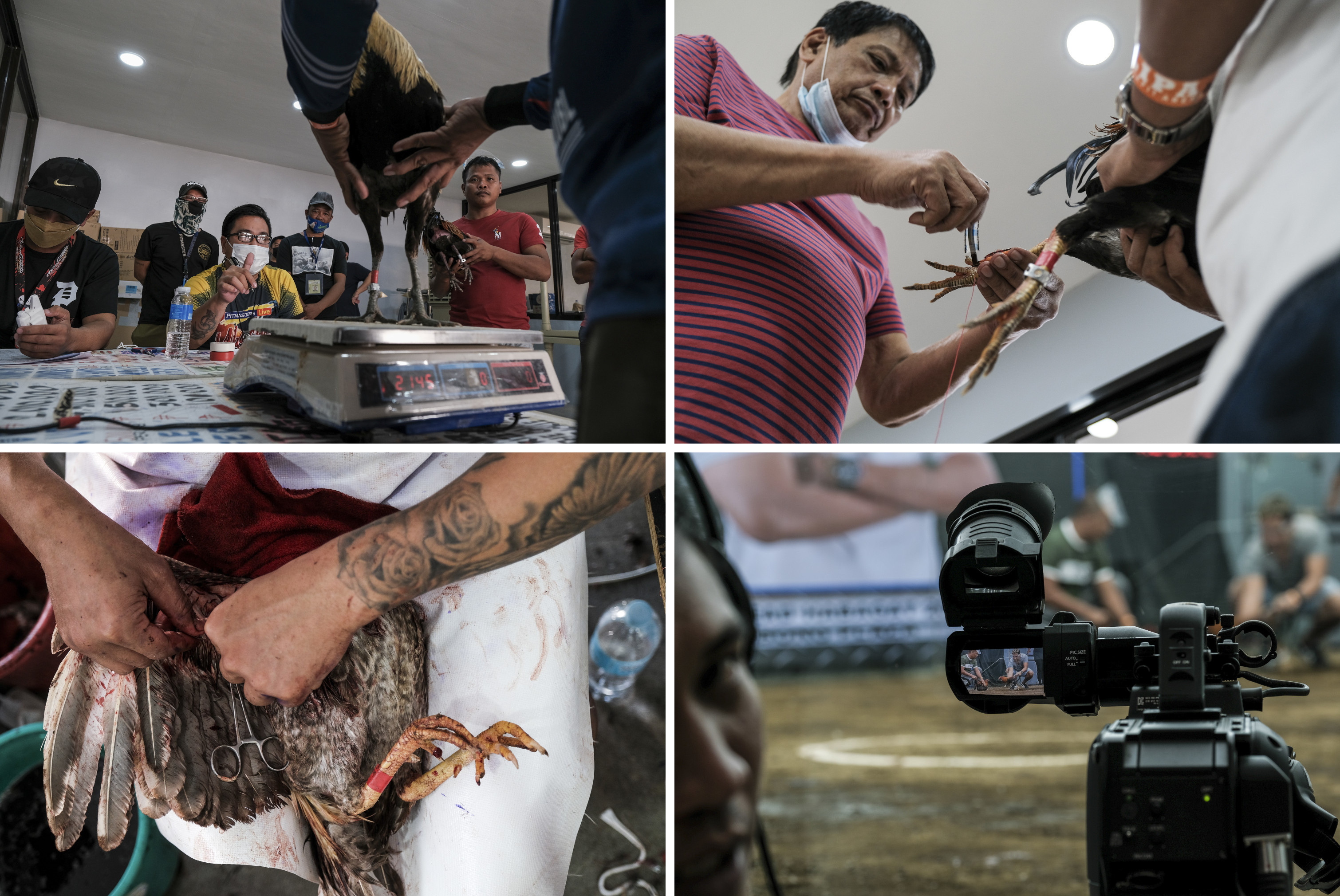 顺时针从右上角开始:比赛前称重的公鸡;一把刀连接在比赛用的鸡身上;摄像师专注于一场比赛;比赛后处理伤口。摄影师:Veejay Villafranca/Bloomberg近年来,这个游戏的受欢迎程度有所下降。政府规定只有周日和节假日才能有现场观众的比赛。斗鸡场提高了下注者的入场费。当新冠封锁关闭企业时,这个国家最有雄心的游戏运营商,他们已经开始直播比赛,意识到了一个机会:为什么不将更多比赛数字化呢?
