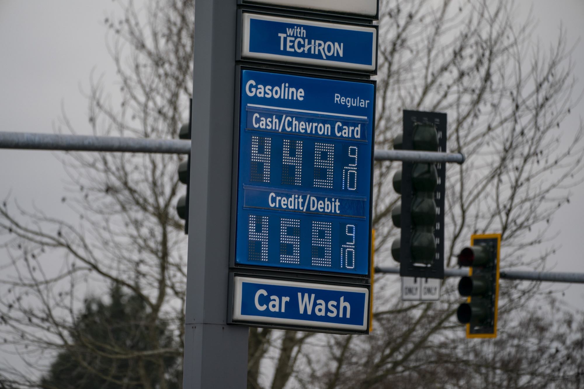 在2022年3月7日,美国华盛顿州西雅图的一家雪佛龙加油站,汽油价格超过每加仑4美元。不断上涨的汽油价格是能源通胀的明显迹象,正在伤害消费者。