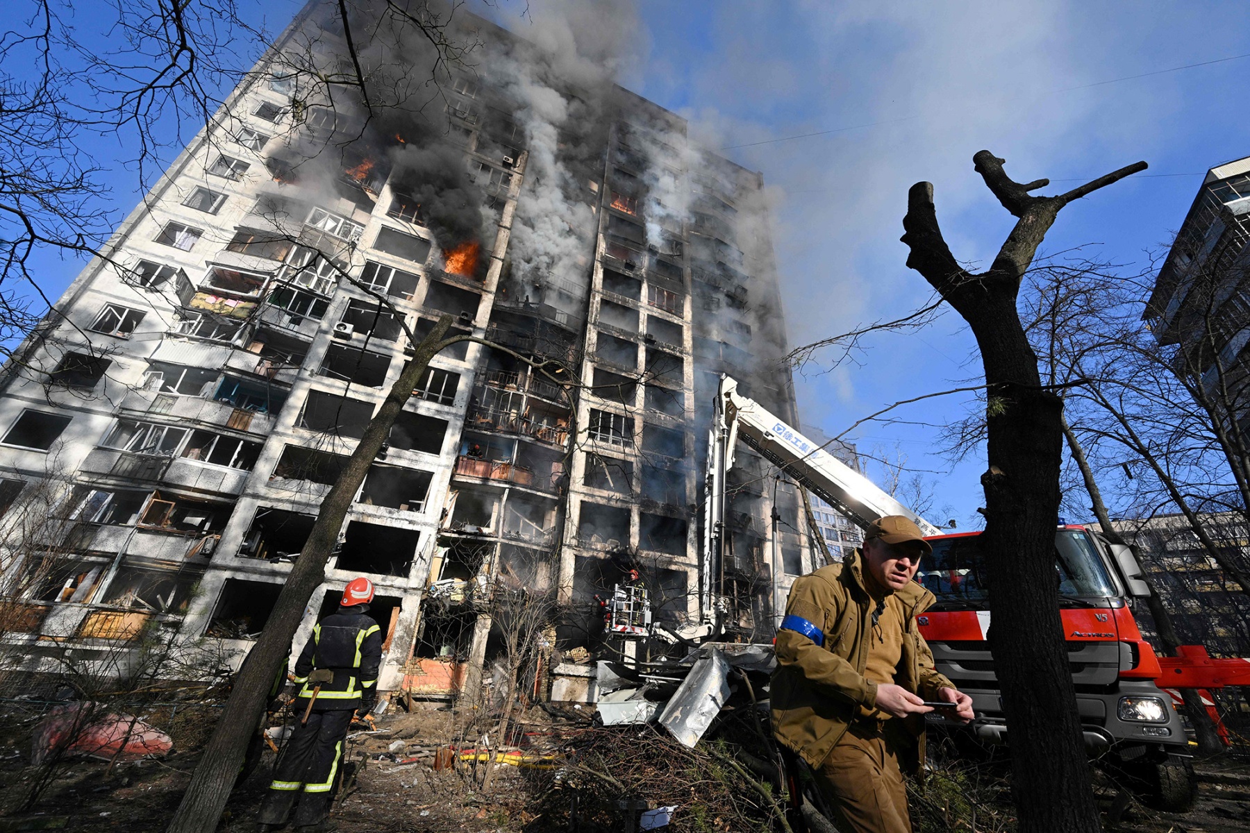 消防员努力扑灭基辅一栋住宅公寓楼在3月15日遭到俄罗斯袭击后起火。摄影师:克里斯·麦格拉斯/盖蒂图片社### 明天你需要了解的事情