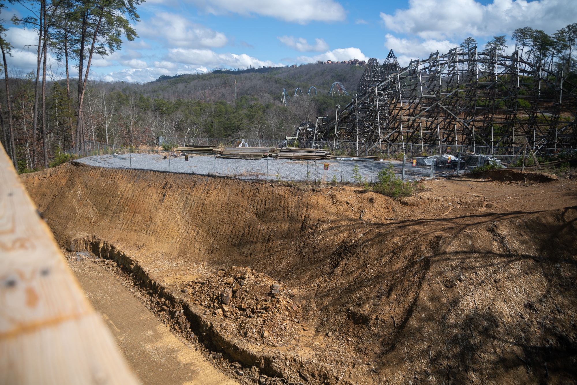 一个Dollywood过山车是正在建设中的位于田纳西州皮格恩福奇的员工宿舍的背景。