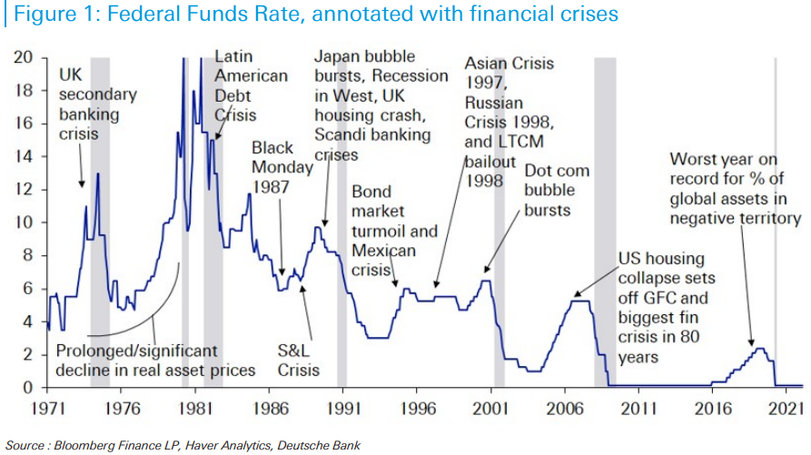 另一个令人警醒的观察:德意志银行主题研究负责人吉姆·里德周二写道,美联储的紧缩周期通常伴随着某种危机。目前已经有风险传言称俄罗斯可能违约。