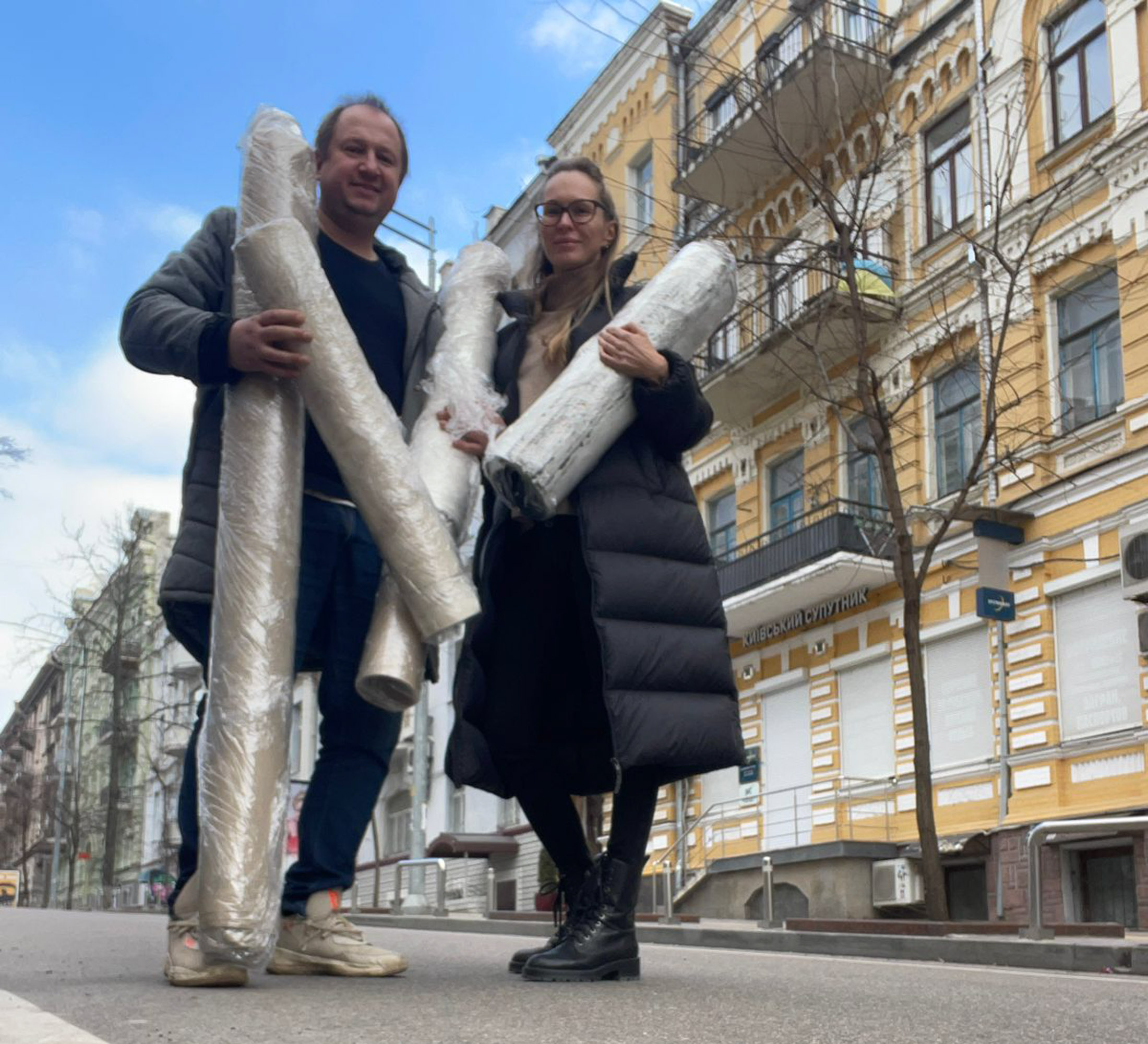 Shchelushchenko 和 Vozianova 在基辅团聚,带着一卷卷的艺术品。来源:Katia Vozianova