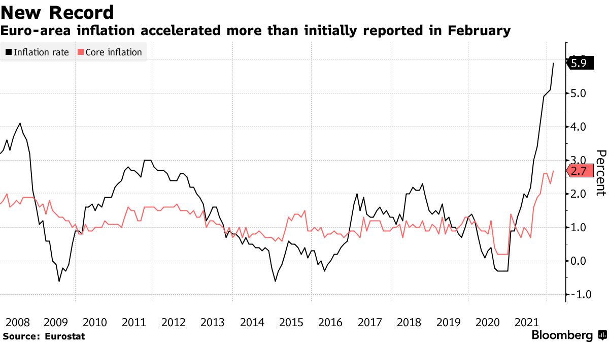 欧洲担心通货膨胀趋势恶化 - 彭博社