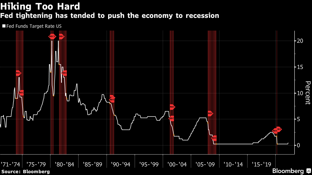 当然,鉴于上述的增长担忧以及中央银行在不导致经济陷入衰退方面的记录不佳,美联储可能不会有太多加息的空间。