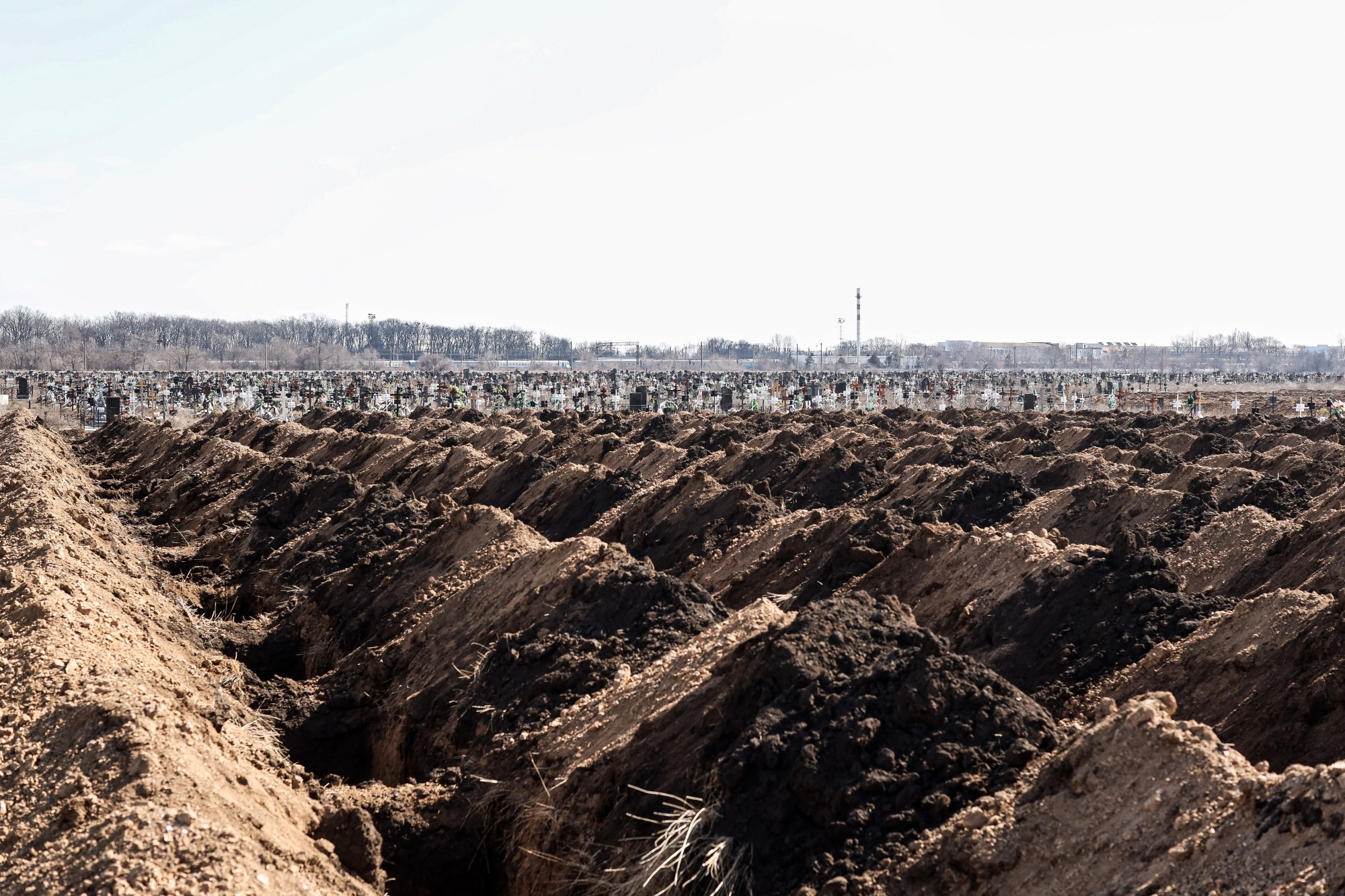 乌克兰敖德萨郊外一座墓地上预先挖好的坟墓。摄影师:乔纳森·阿尔佩里/彭博社在这里注册特别每日简报:俄罗斯入侵乌克兰,点击这里查看本周最引人注目的政治图片。