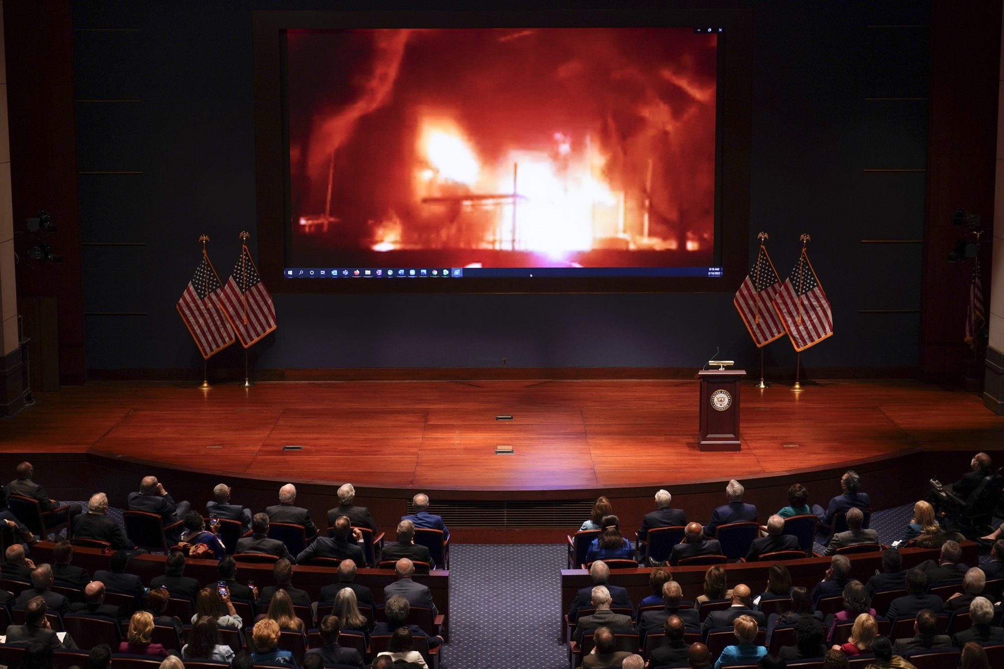 乌克兰战争的镜头显示,乌克兰总统泽连斯基周三通过虚拟方式向美国国会发表讲话。