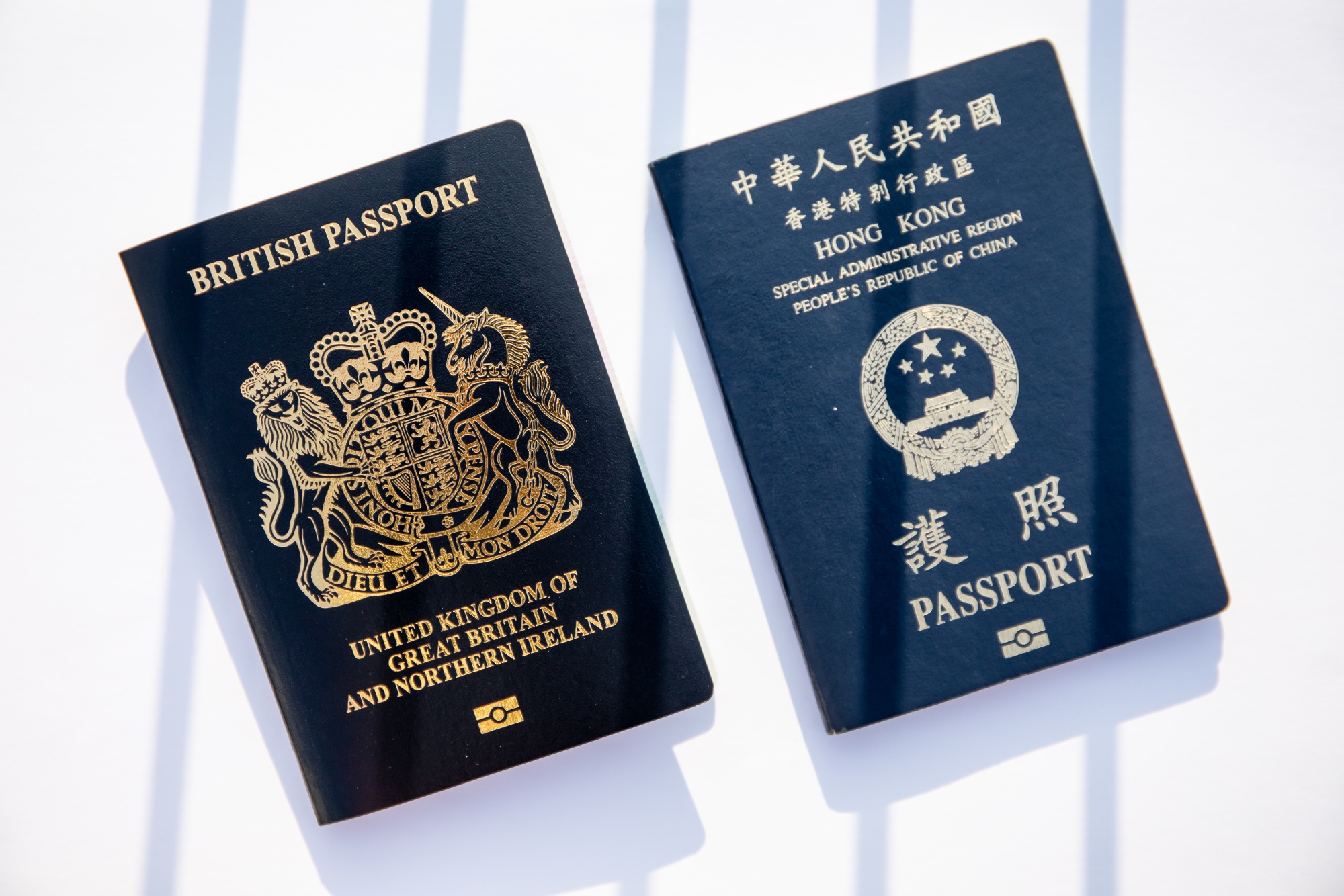 一本英国国民(海外)护照,左边是香港特别行政区(HKSAR)护照。摄影师:Paul Yeung/彭博社作为一名教师,当香港政府要求学校采用亲中课程时,艾达开始计划离开。“我并不打算去年就离开,但我提前申请是因为担心签证政策会改变。”