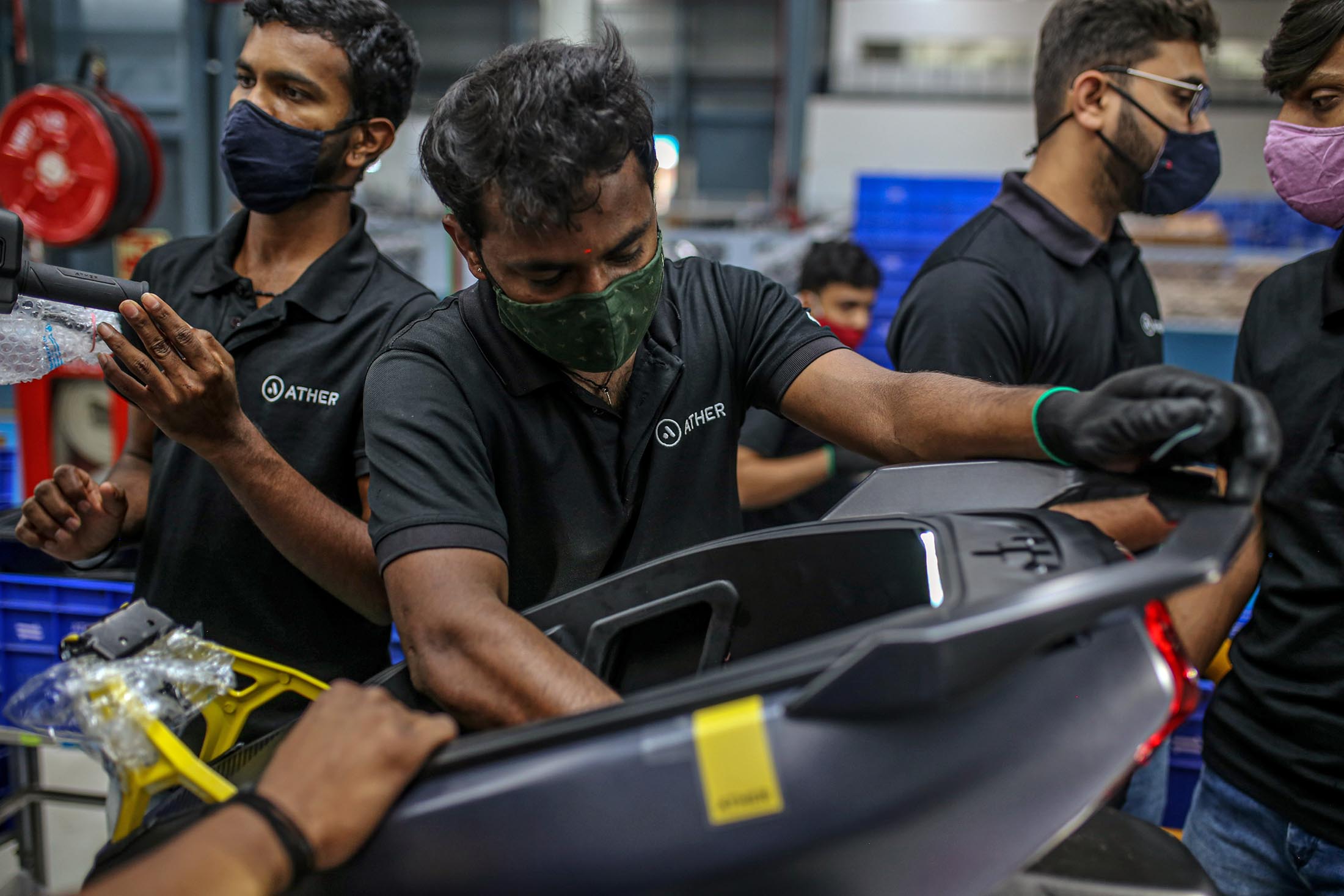 在Hosur的Ather 450X电动摩托车生产线。摄影师:Dhiraj Singh/Bloomberg
