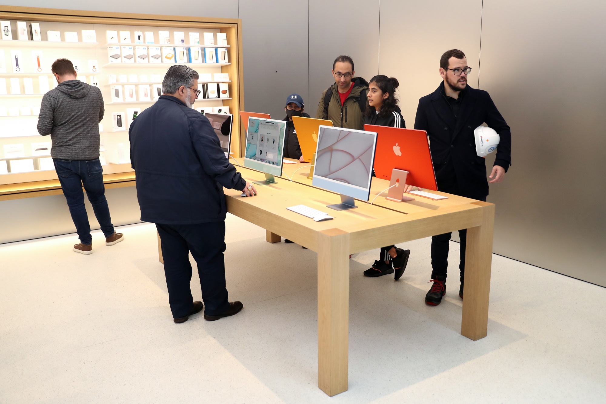 一家带有M1 iMac的苹果零售店。