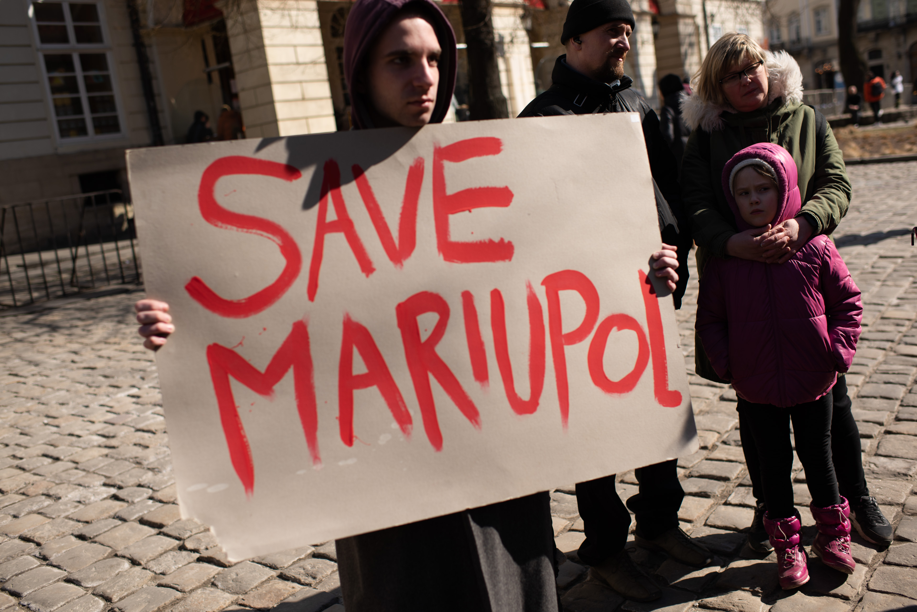 乌克兰人在3月19日在利沃夫为马里乌波尔的居民和捍卫者表示支持。