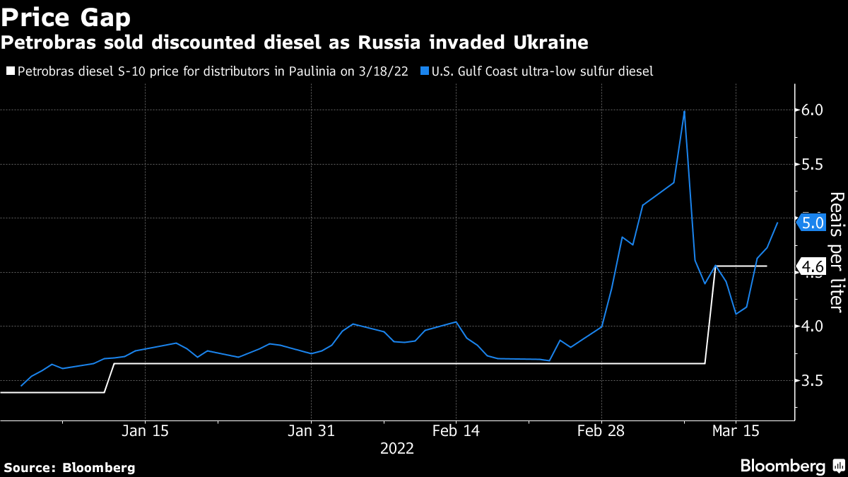 如果俄罗斯在乌克兰的战争中油价进一步上涨,经济团队将建议宣布国家灾难,以便促进社会援助支付,两名知情人士透露,由于细节属私密,他们要求不透露身份。随着石油价格回升至每桶110美元以上,Petrobras的Luna再次以低于国际价格的价格出售燃料,即使在本月的价格上涨之后,政治压力也要求继续这样做。