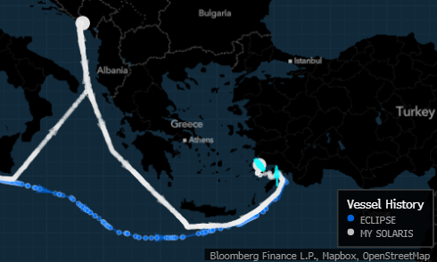 罗曼·阿布拉莫维奇的超级游艇已经移师到土耳其海岸,因为这位俄罗斯亿万富翁正面临英国和欧盟可能对其资产进行查封的前景。根据彭博社编制的船舶数据,长533英尺的Eclipse号超级游艇现在停靠在土耳其西南部的马尔马里斯附近,458英尺的My Solaris号也在附近。
