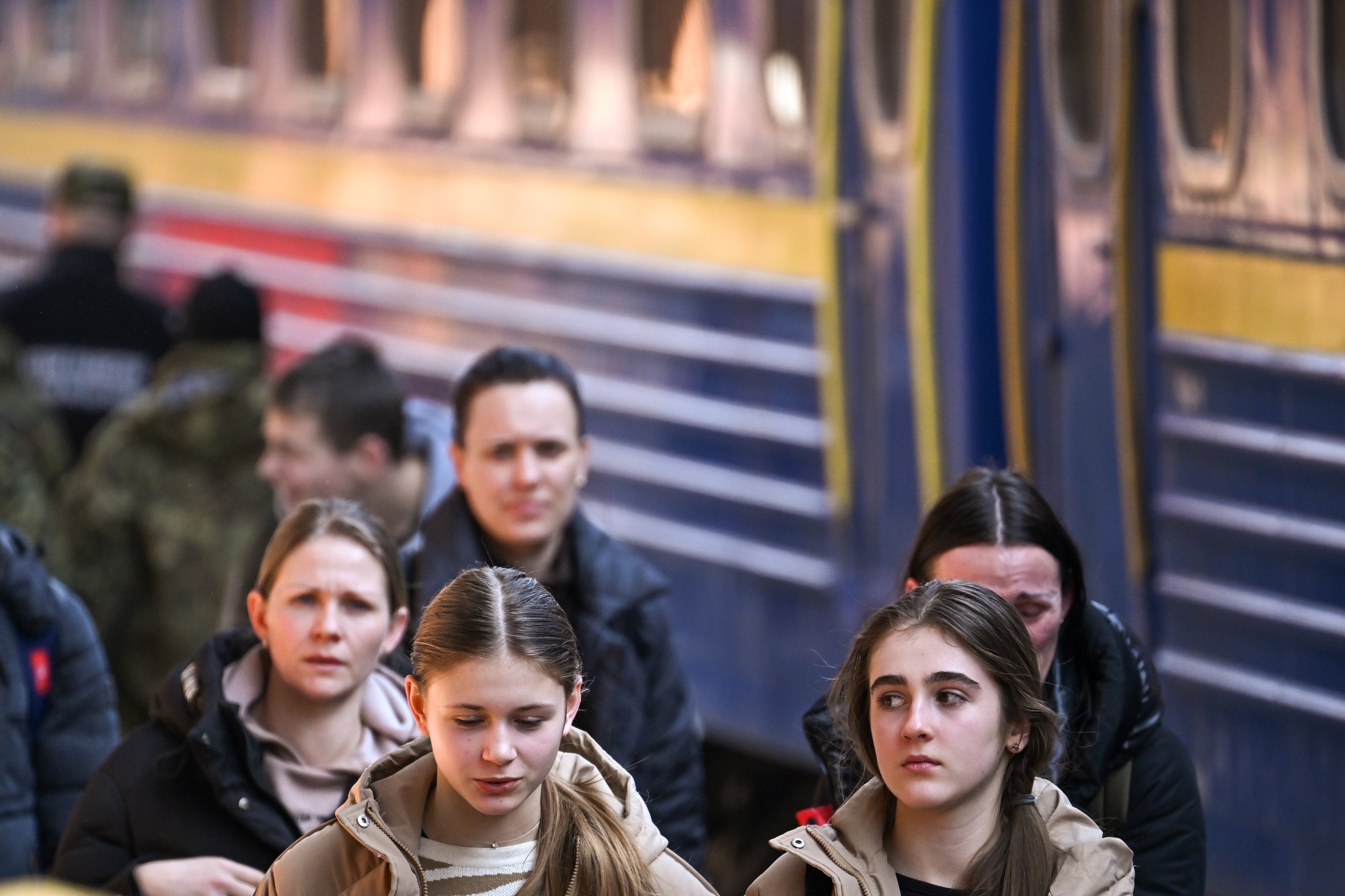 乌克兰难民于3月21日抵达波兰普热梅希尔。摄影师:Jeff J Mitchell/Getty Images
