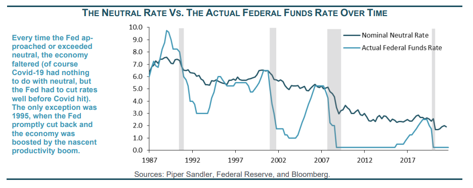 事实上,Piper Sandler的团队指出,在过去35年中,每当联邦储备达到或超过中性利率时,经济都会出现问题,只有1995年是个例外。