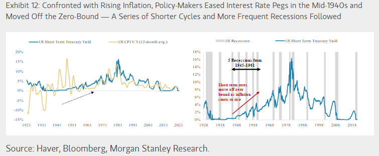那接下来呢?根据摩根士丹利的数据,回到1940年代,美国在战争结束后的16年内经历了五次衰退。