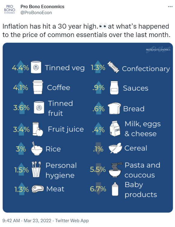 通胀、能源、利率和税收的增加都为Sunak关于经济的声明提供了背景。今天早些时候的数据显示,消费价格上涨的速度现在达到了30年来的新高。