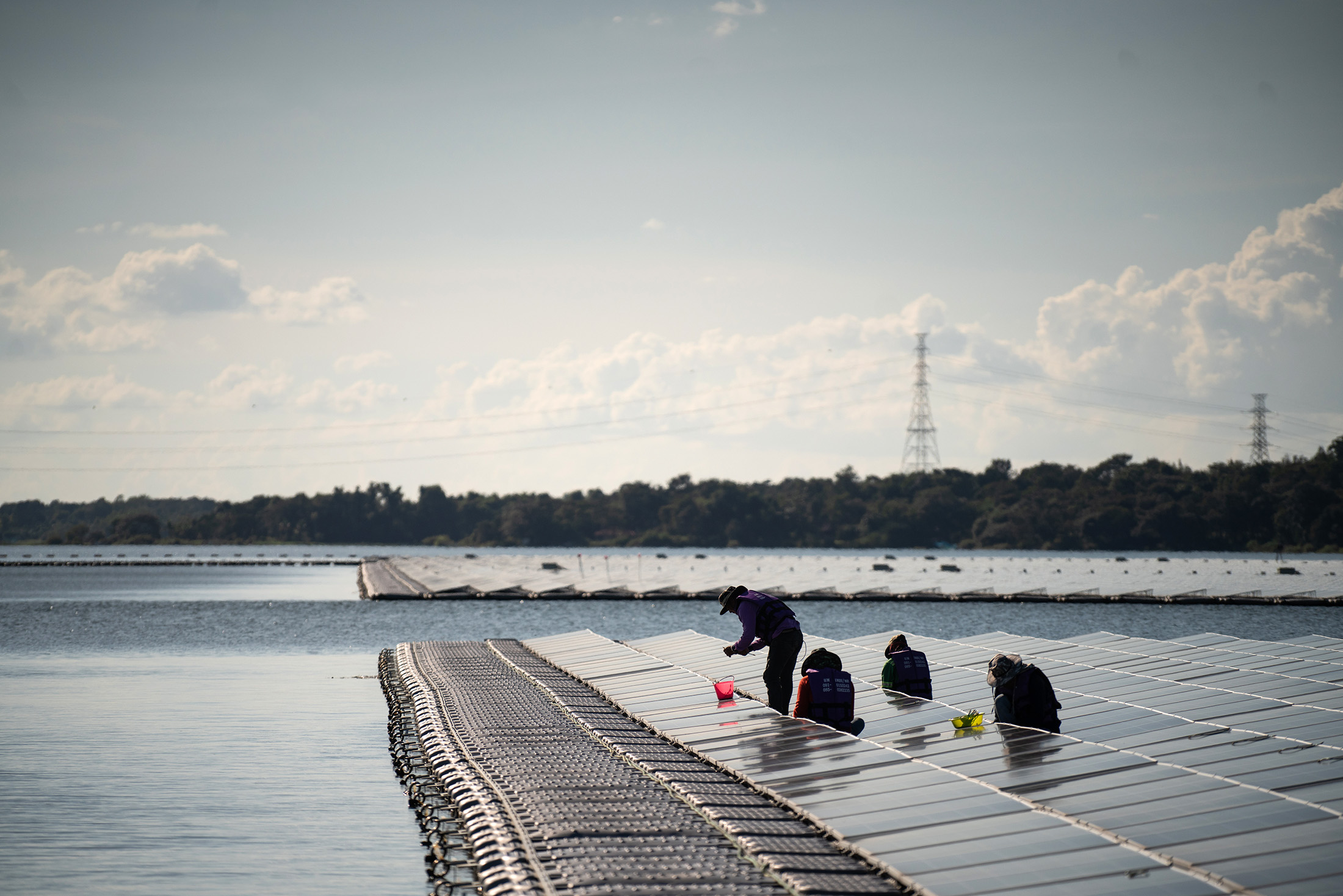 泰国Sirindhorn区的浮动太阳能发电厂。摄影师:Nicolas Axelrod/彭博社