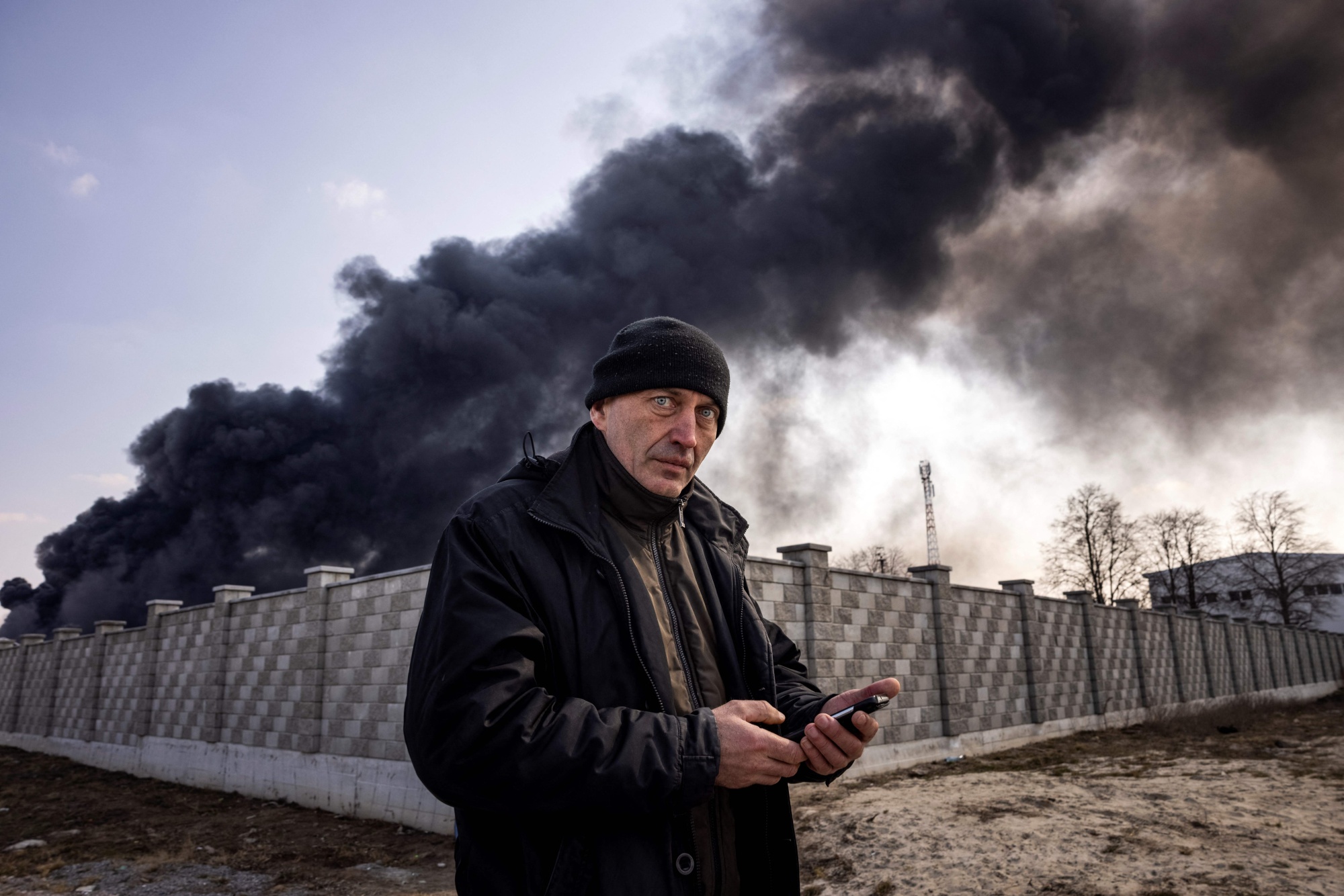 俄罗斯袭击乌克兰Kalynivka市的燃料储存设施后,烟雾在3月25日升起。