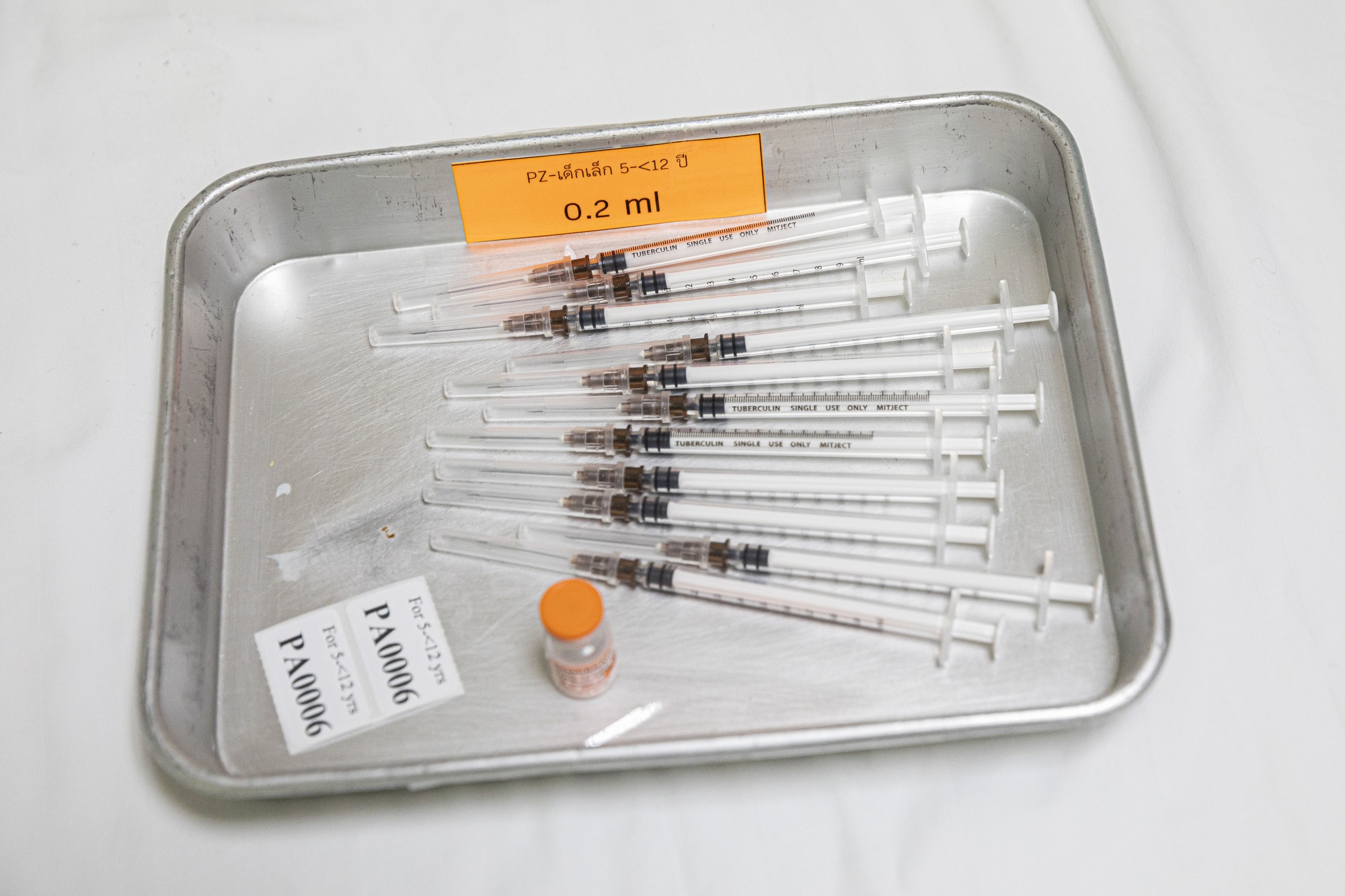 在泰国曼谷的国家儿童健康研究所,辉瑞-联德Covid-19疫苗的预先配制剂。