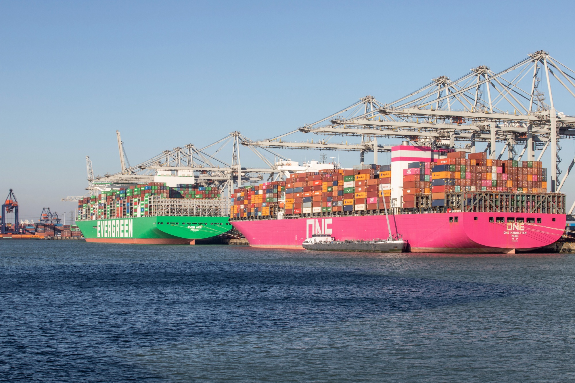 在3月8日,由欧洲集装箱码头BV运营的德尔塔码头停靠的集装箱船在鹿特丹港口。
