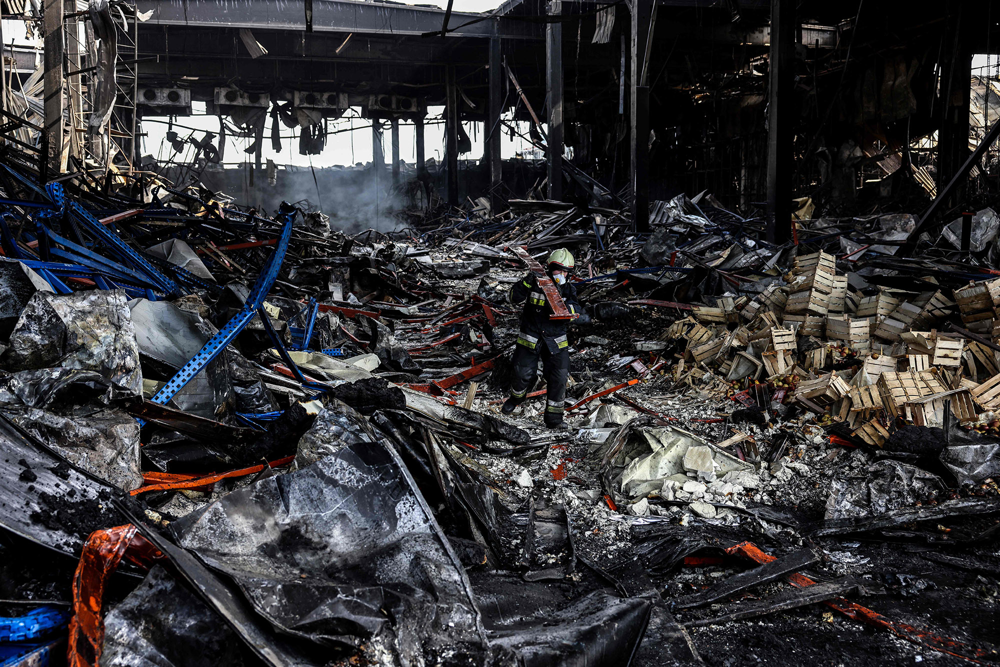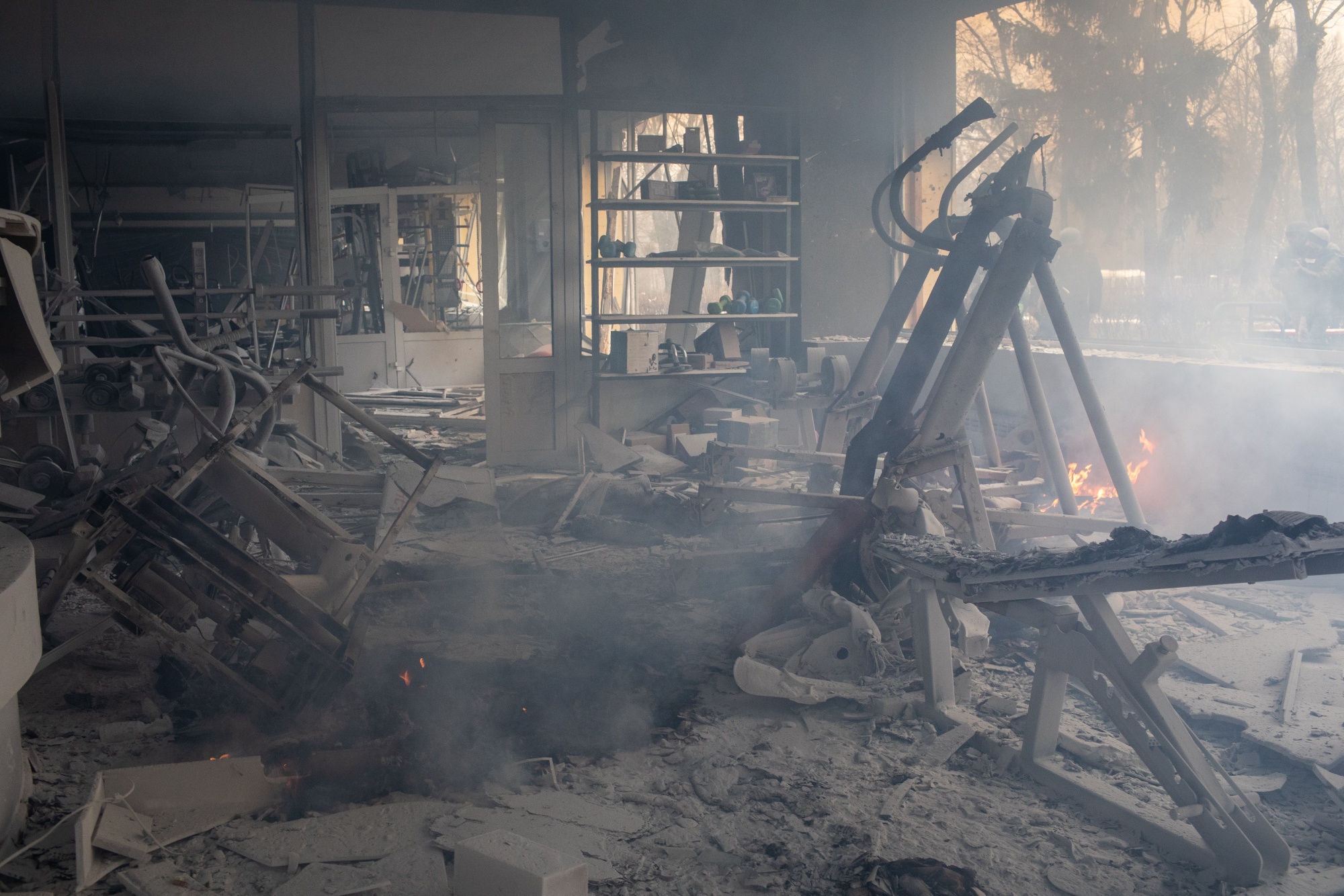 俄罗斯导弹袭击后在乌克兰基辅的一家被摧毁的健身中心,日期为3月2日。