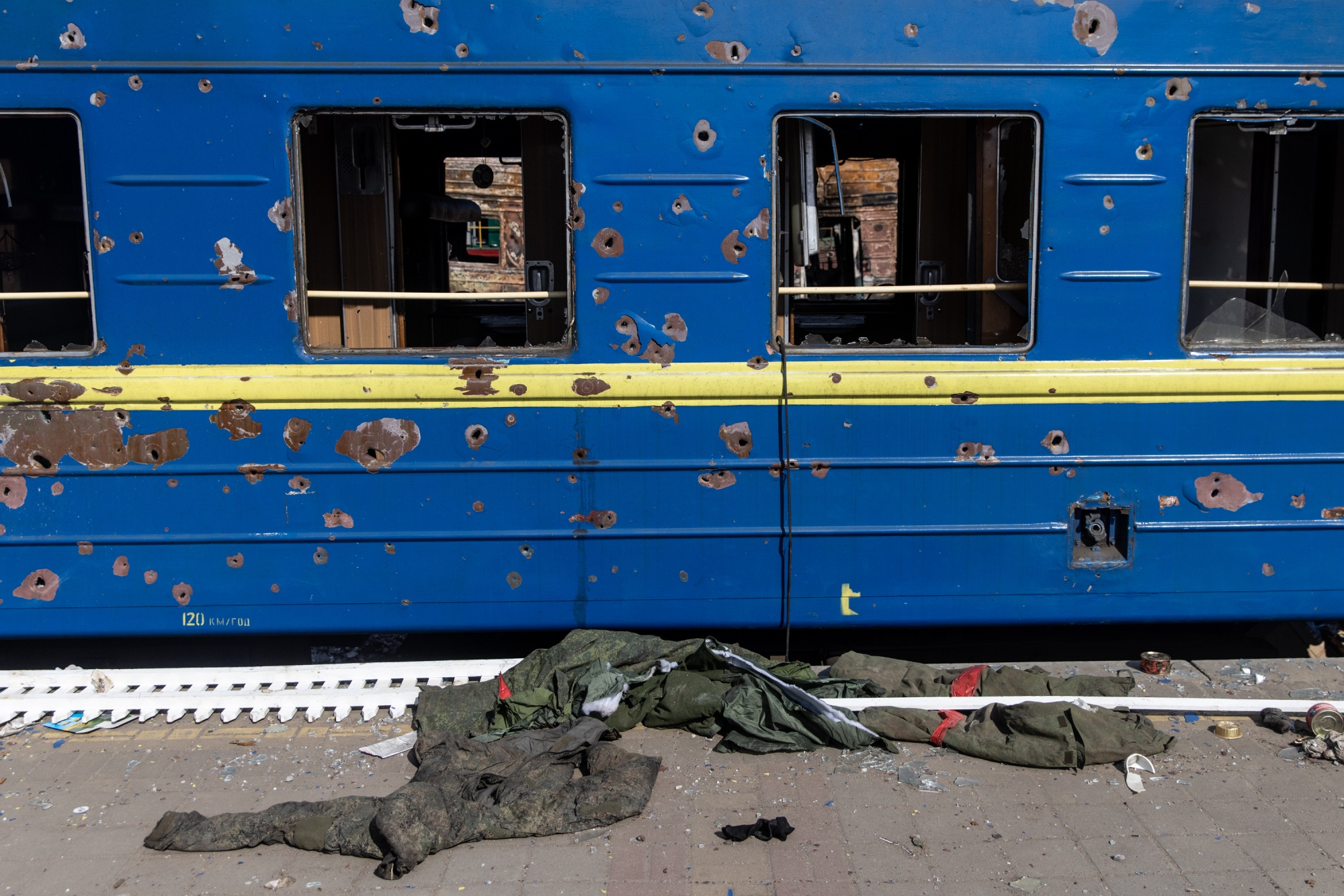 废弃的俄罗斯军服被看到堆放在东北城镇Trostyanets的一列严重受损的火车旁,这个东北城镇在三月底的激烈战斗后被俄罗斯人占领数周,然后夺回。摄影师:Chris McGrath/Getty Images Europe保持列车运行也被证明是危险的。至少有40名铁路工作人员在工作中丧生,41人受伤,根据Kamyshin的说法。Kyksa说,在一个案例中,一名列车售票员在疏散列车在接载乘客之前触雷身亡。考虑到乌克兰铁路员工数量 — 现在因为许多女性员工已被疏散到西部而减少 — 在战争爆发前约为25万人,使其成为该国最大的雇主之一,这些令人担忧的数字仍然相对较低。