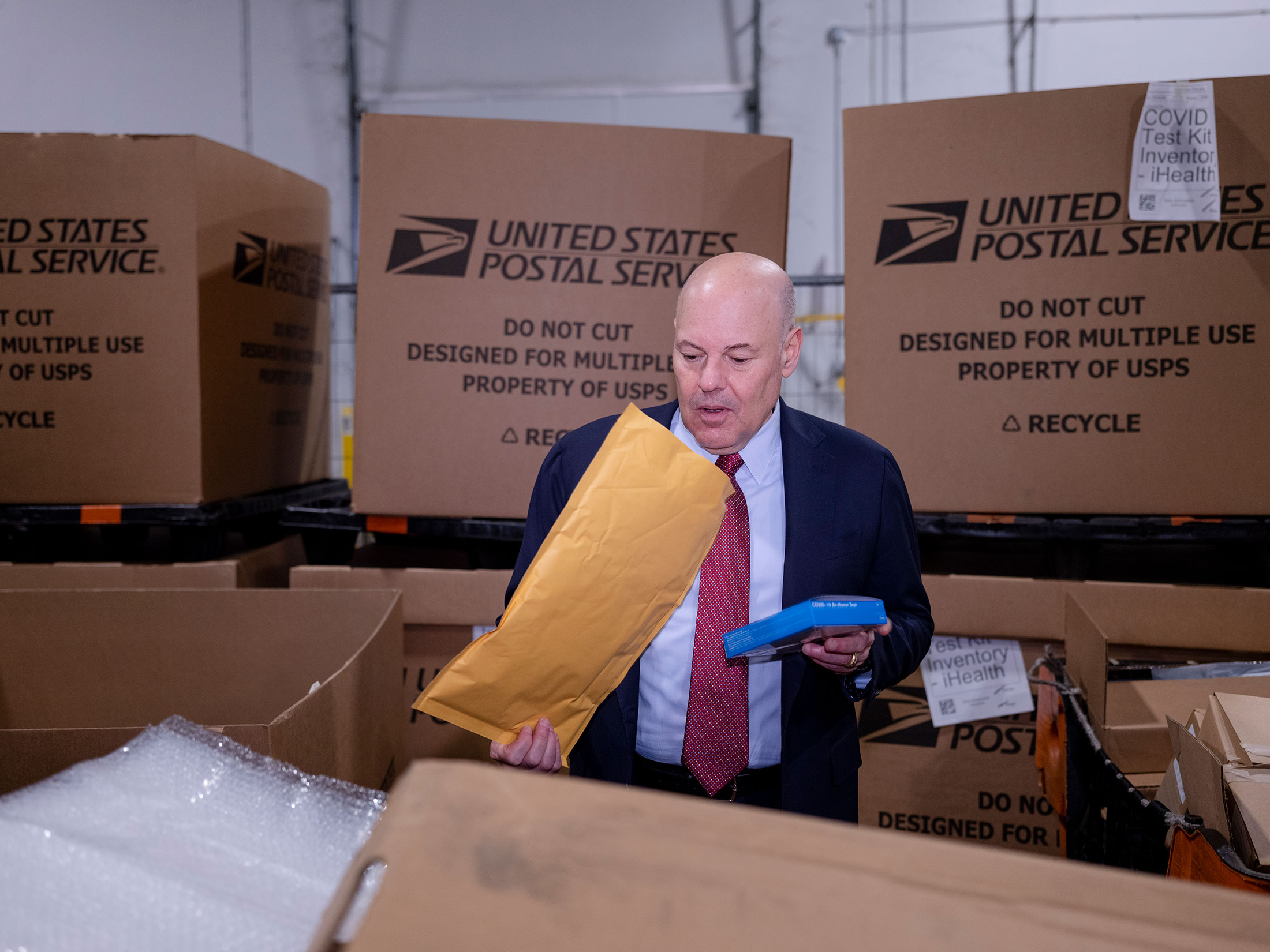 同一些建筑在圣诞节后成为履行中心,当时USPS与美国人类服务部合作分发数百万份免费的Covid测试套装。USPS之前并没有做过这种工作,但DeJoy在新品种公司有经验。“他的物流经验对该项目的成功至关重要,”拜登委员会任命的Amber McReynolds说。