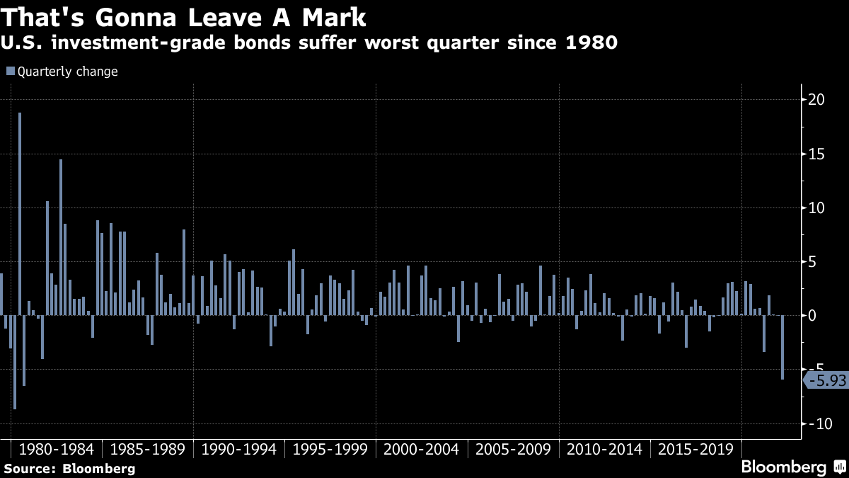 然而,值得注意的是,2022年第一季度对美国公司债券市场来说是多么糟糕。美国高评级债券下跌了近6%,创下了自1980年以来的最差季度表现,受到利率风险、高涨的通货膨胀和时冷时热的风险偏好的毒性组合的拖累。