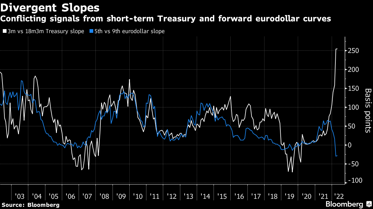 那么,这可能表明我们现在还不应该敲响衰退警钟。但加拿大豪华银行的Priya Misra本周在一份备忘录中写道,鉴于加息周期刚刚开始,3m10y曲线目前并不是特别相关,而票据收益率与政策利率同步变动。加拿大蒙特利尔银行资本市场的Ian Lyngen和Ben Jeffery在他们的每周播客中详细解释了这个问题: