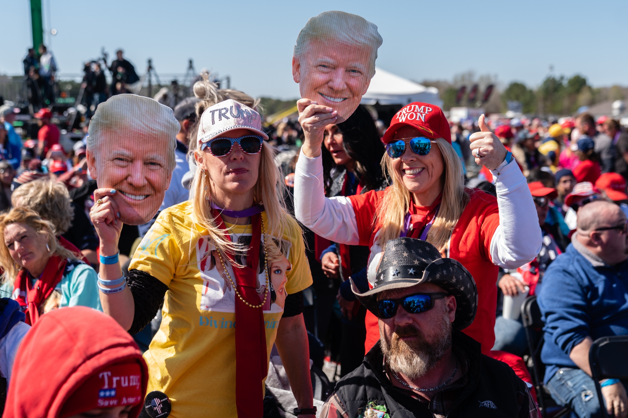 与上个月在乔治亚州的集会上举起前美国总统唐纳德·特朗普的面具的与会者。摄影师:伊莱贾·努维拉格/彭博社在接受广告的县,一个月内接种的疫苗剂量比没有接受广告的地方多了大约100剂 —— 这足以表明支持似乎起到了作用。尽管只使用了一个社交媒体渠道,预算很小(10万美元)。