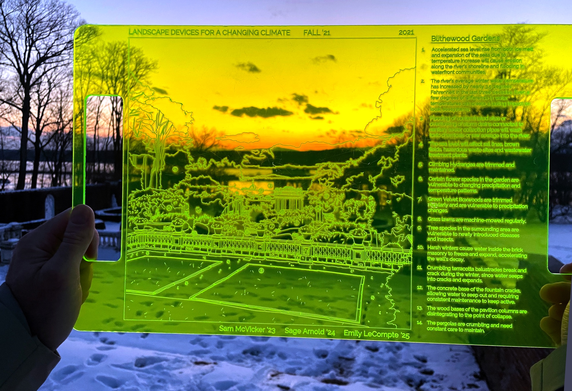 一位气候变化课程的学生项目想象了校园景观在全球变暖一个世纪后的变化。照片:巴德学院其他课程更加传统。学生们设计了一个由自行车牵引的移动校园参与站,学生们可以在那里分享他们对如何让巴德更好的想法。一个设计工作室专注于将纽约哈德逊城旁边的空置豪华办公空间改建为公共住房,将这个练习框定为“现实主义、叛乱实践,其中建筑作为争取住房正义的工具。”
