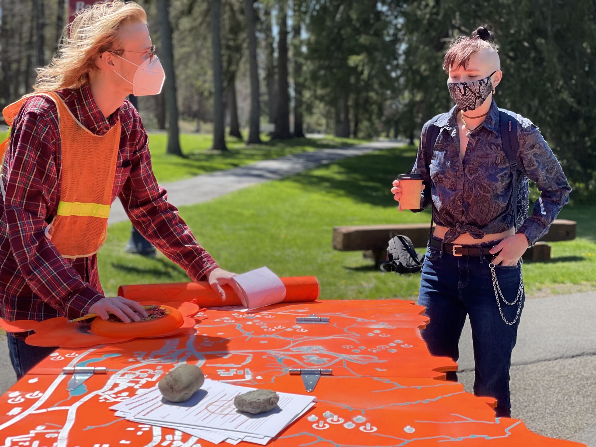 巴德学院新建筑项目的学生展示了“住房正义地图”,这是一个名为“住房与集体关怀”的课程项目。