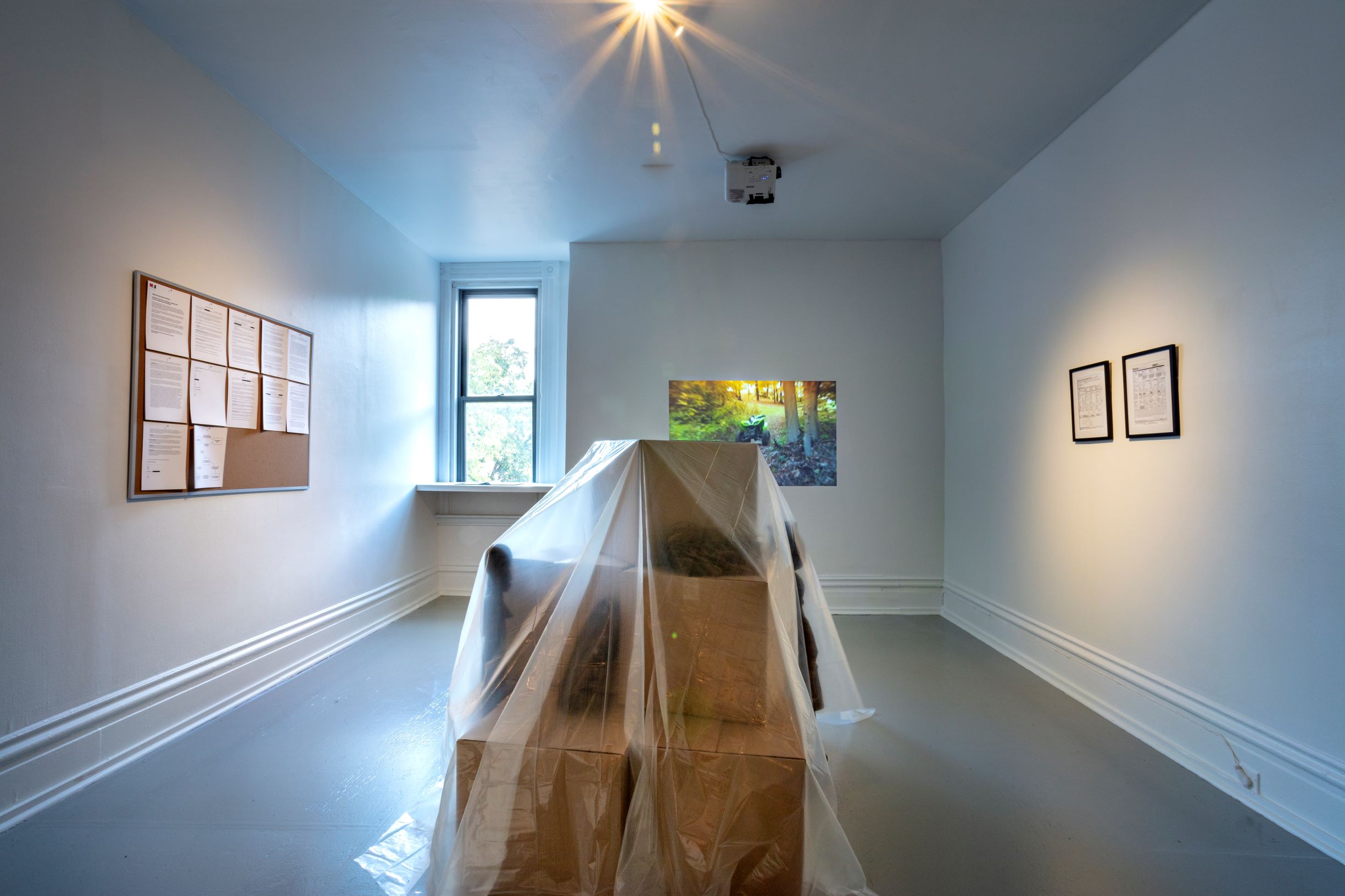 总体效果可能更像一篇论文而不是典型的博物馆展示,但它也为观众提供了一个学习的机会,超越艺术的常规抽象,了解这些房地产和税收流程是如何运作的,以及它们如何造成种族不平衡。事实上,展览的一部分是来自史密斯的实际学术研究,他是康涅狄格州三一学院的24岁的工作室艺术研究员,以及数据研究员阿博特。它放在展览空间的窗台上。
