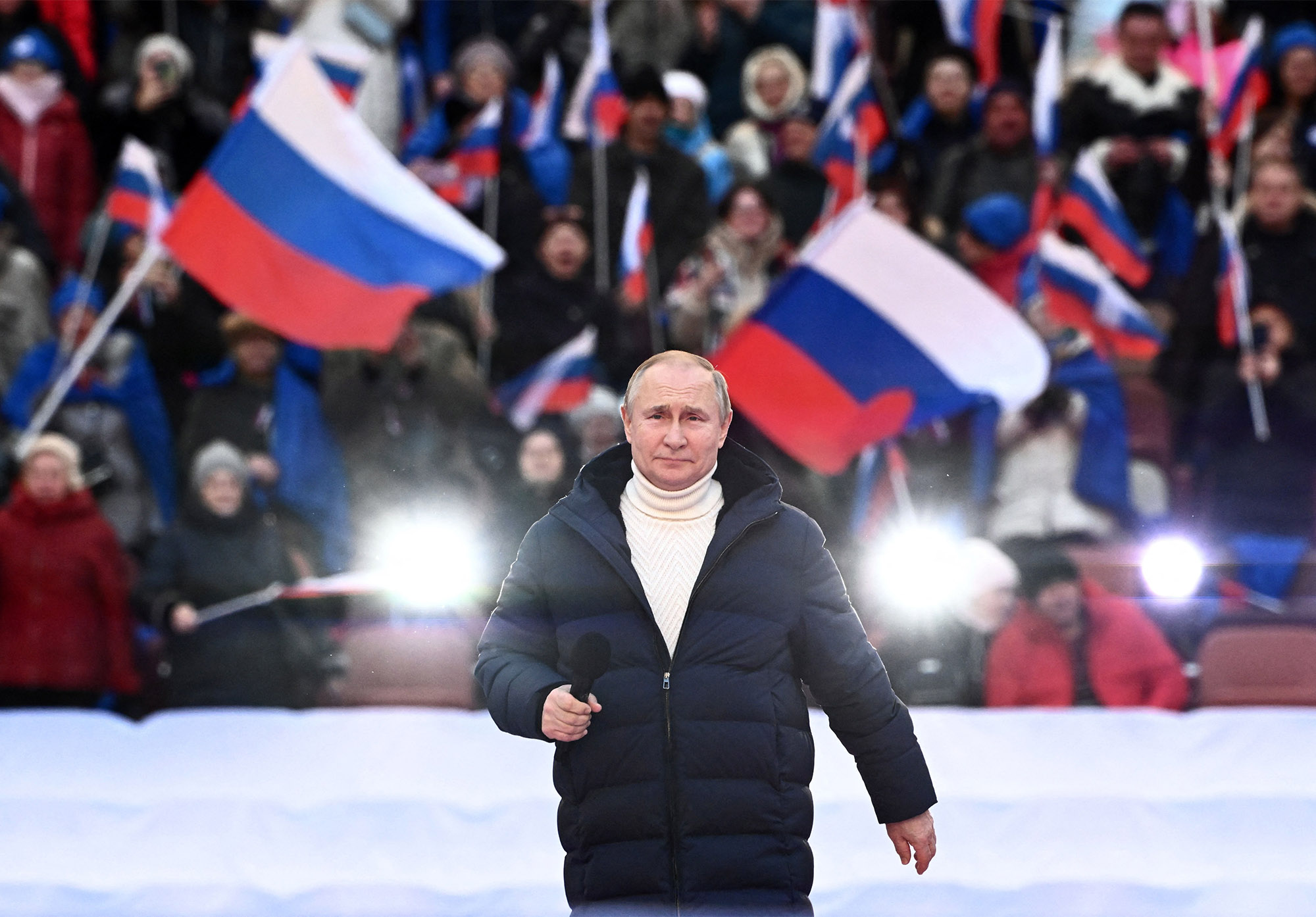 普京总统出席2022年3月18日在莫斯科举行的庆祝俄罗斯吞并克里米亚八周年音乐会。