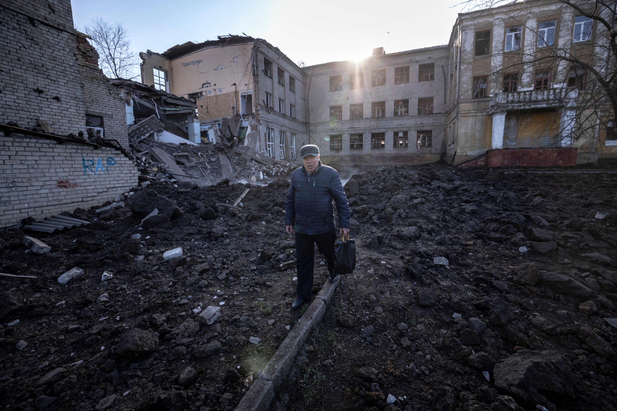 昨天,一名男子在乌克兰东部顿巴斯地区附近的一所受损学校附近行走。摄影师:法德尔·塞纳/法新社/盖蒂图片社在这里注册获取特别每日简报:俄罗斯入侵乌克兰,并与他人分享此时事通讯。他们也可以在这里注册。
