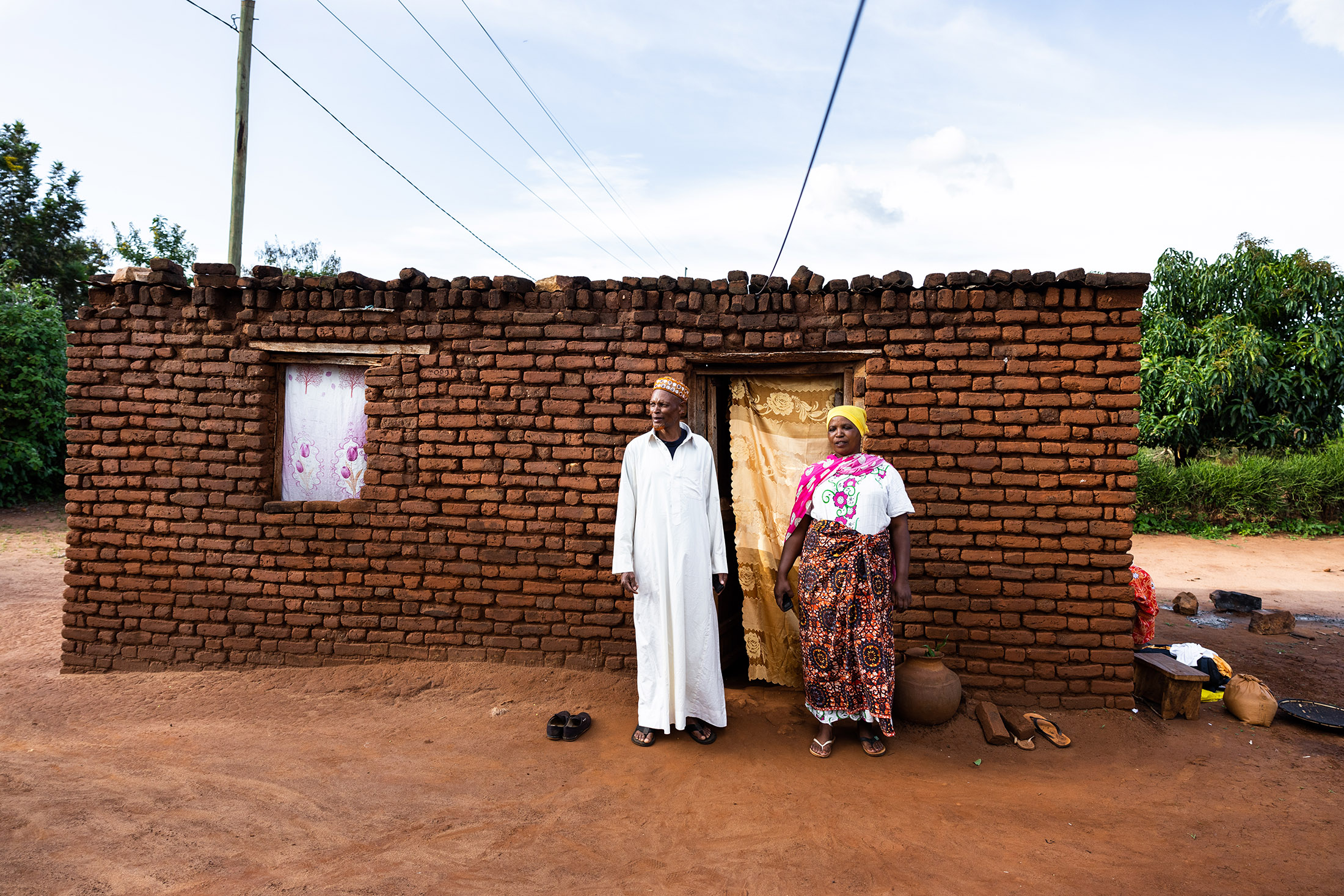 Akida Saidi 和他的妻子 Mwasiti Waziri 站在他们在 Gedamar 的家外。来源:彭博绿色### 预付费太阳能