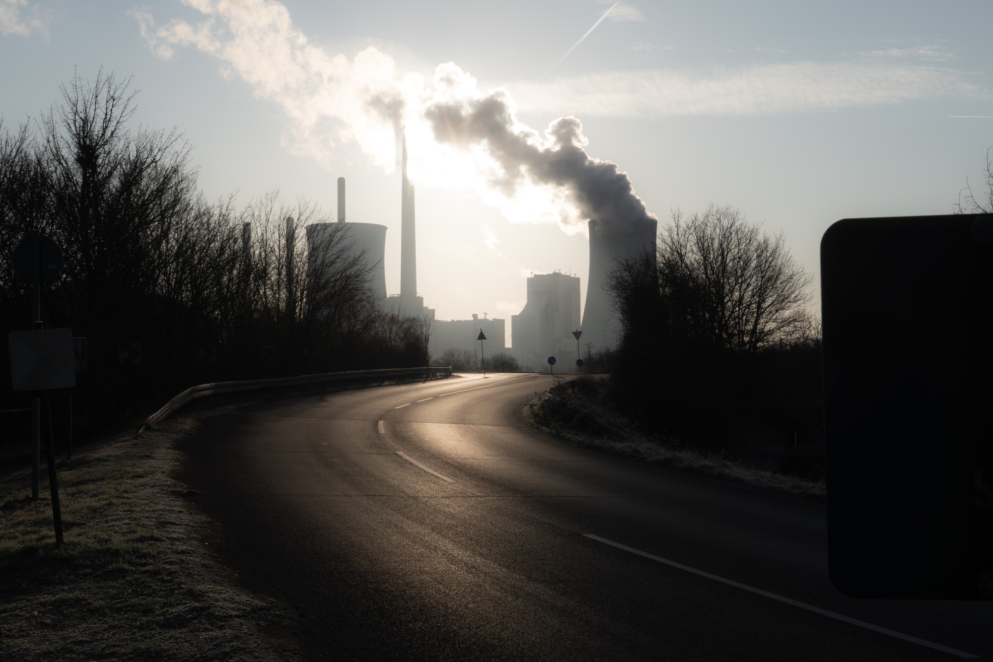 蒸汽从德国格罗斯克罗滕贝格的施陶丁格煤气电厂的烟囱中释放,拍摄于2月13日。
