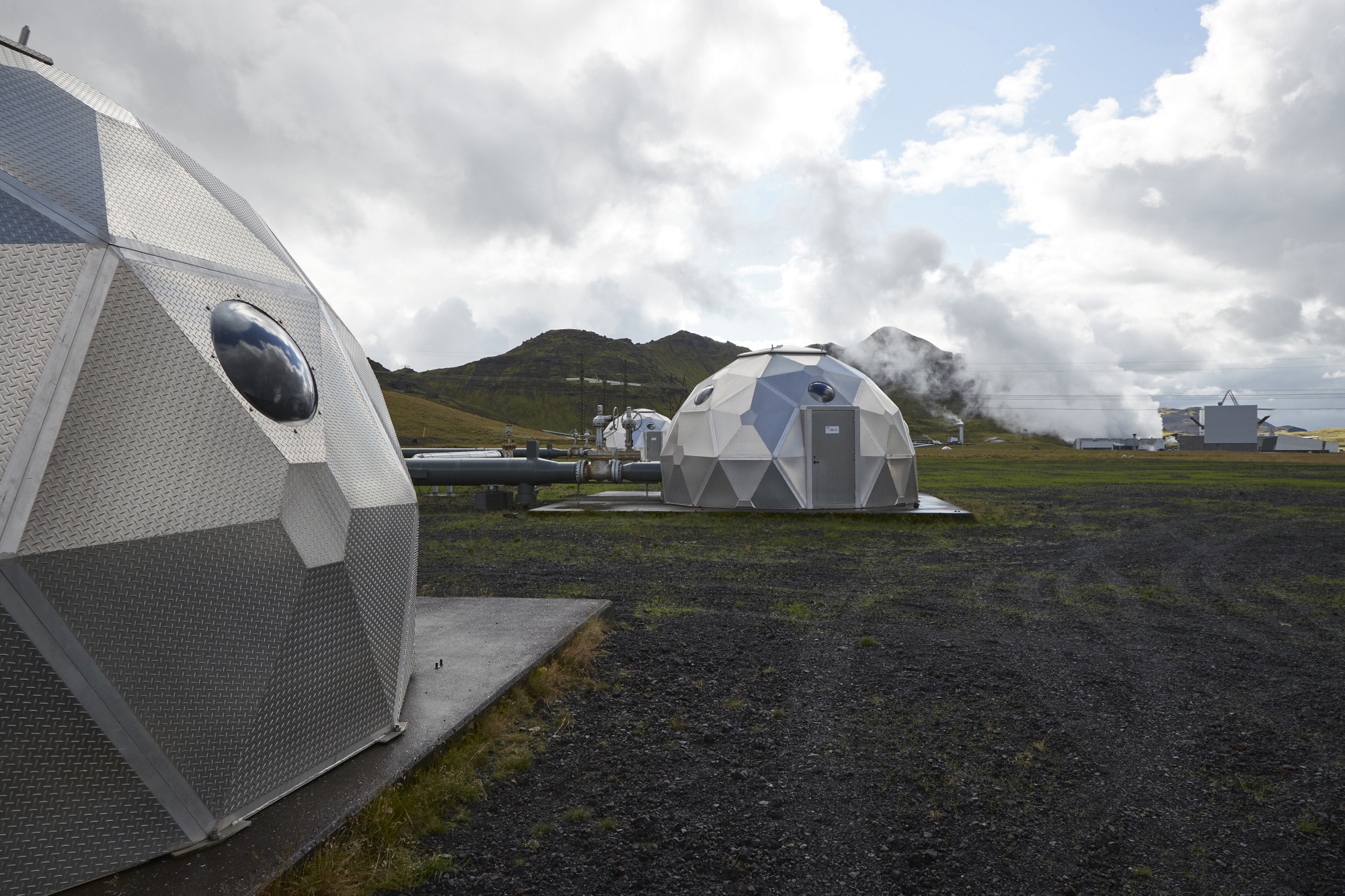 由Carbfix运营的Pods,内含用于将二氧化碳储存在地下的技术,在冰岛的Hellisheidi。