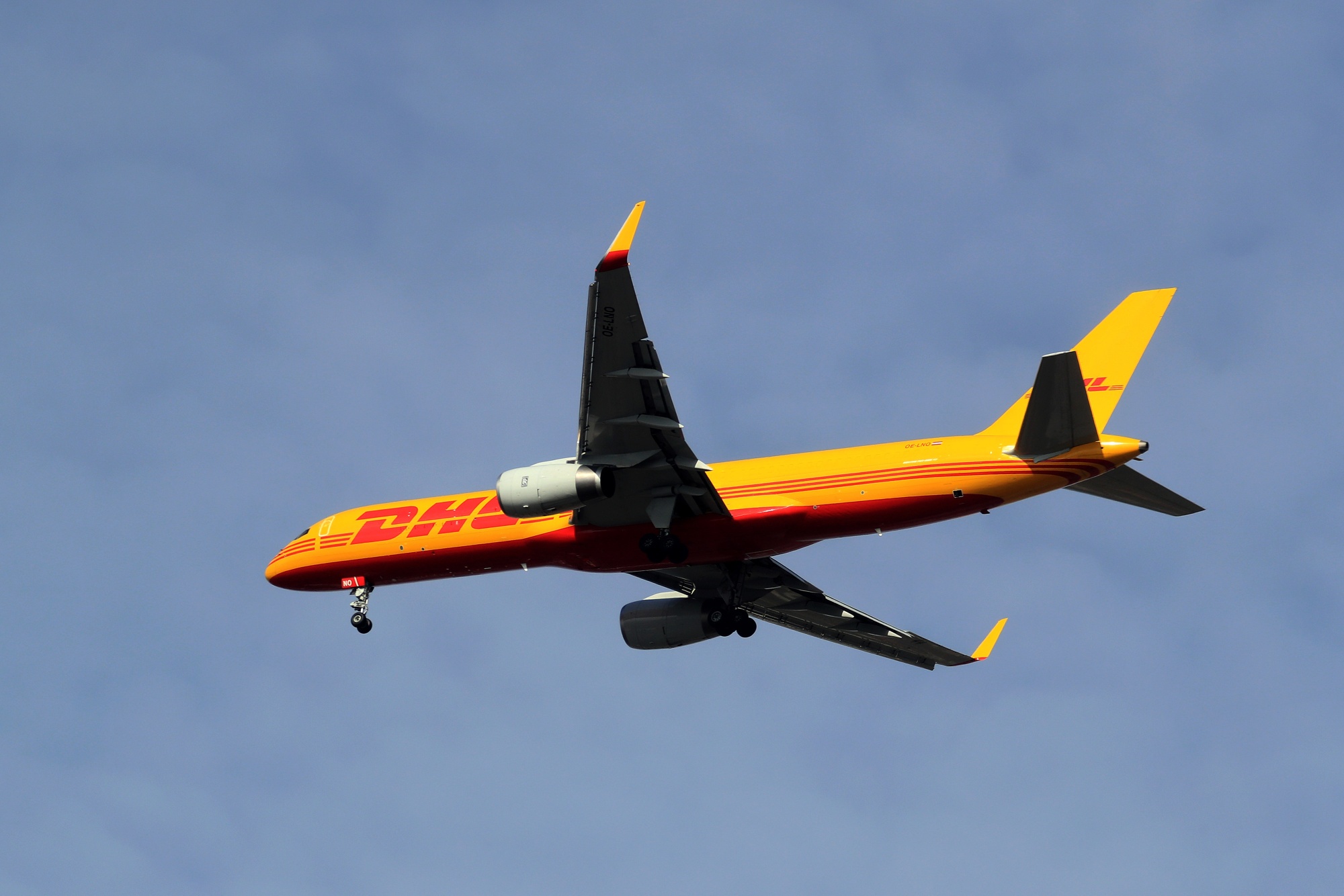 软着陆?德国邮政DHL包裹业务运营的波音757-223货运飞机准备在德国施考迪茨的莱比锡哈雷机场降落,时间是2022年3月2日,星期三。