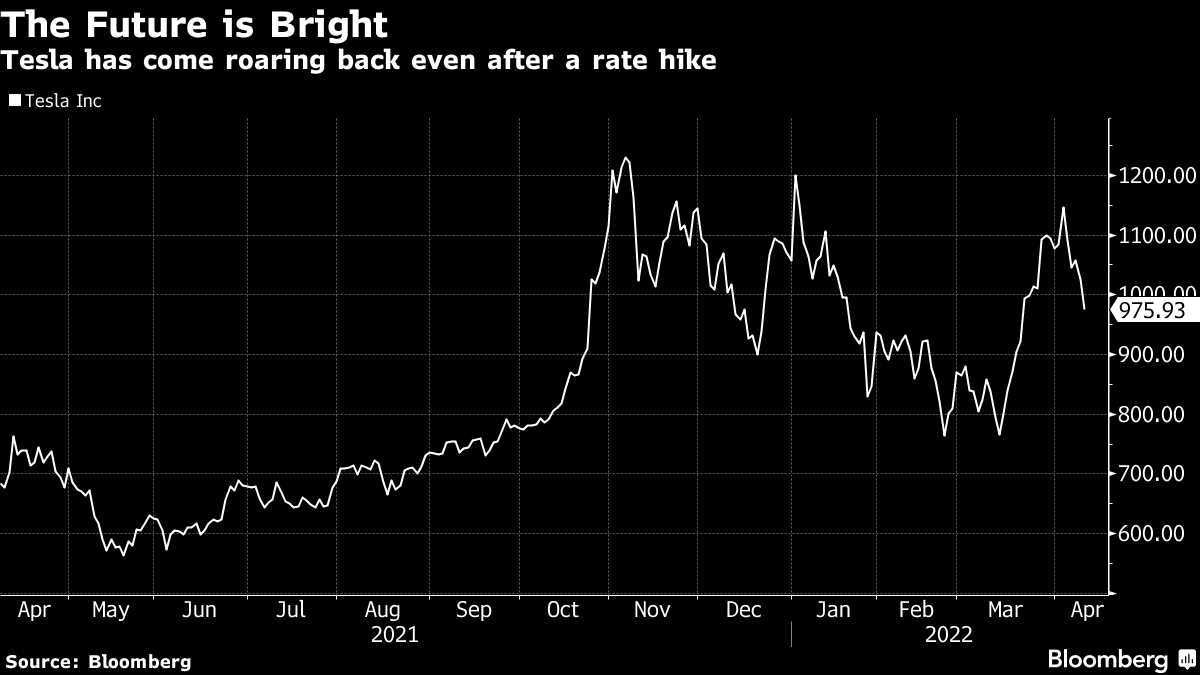 以特斯拉为例。在所有大市值科技股中,它是未来利润最具投机性和被回溯的公司。因此,它是最容易受到未来现金流价值下降的危害的大市值科技股。然而,在联邦储备局暗示采取积极政策行动后,该股票却在联邦基准利率上调后迅速反弹。事实上,它的2022年最低点是FOMC会议前一天。这告诉你金融条件仍然相当宽松。