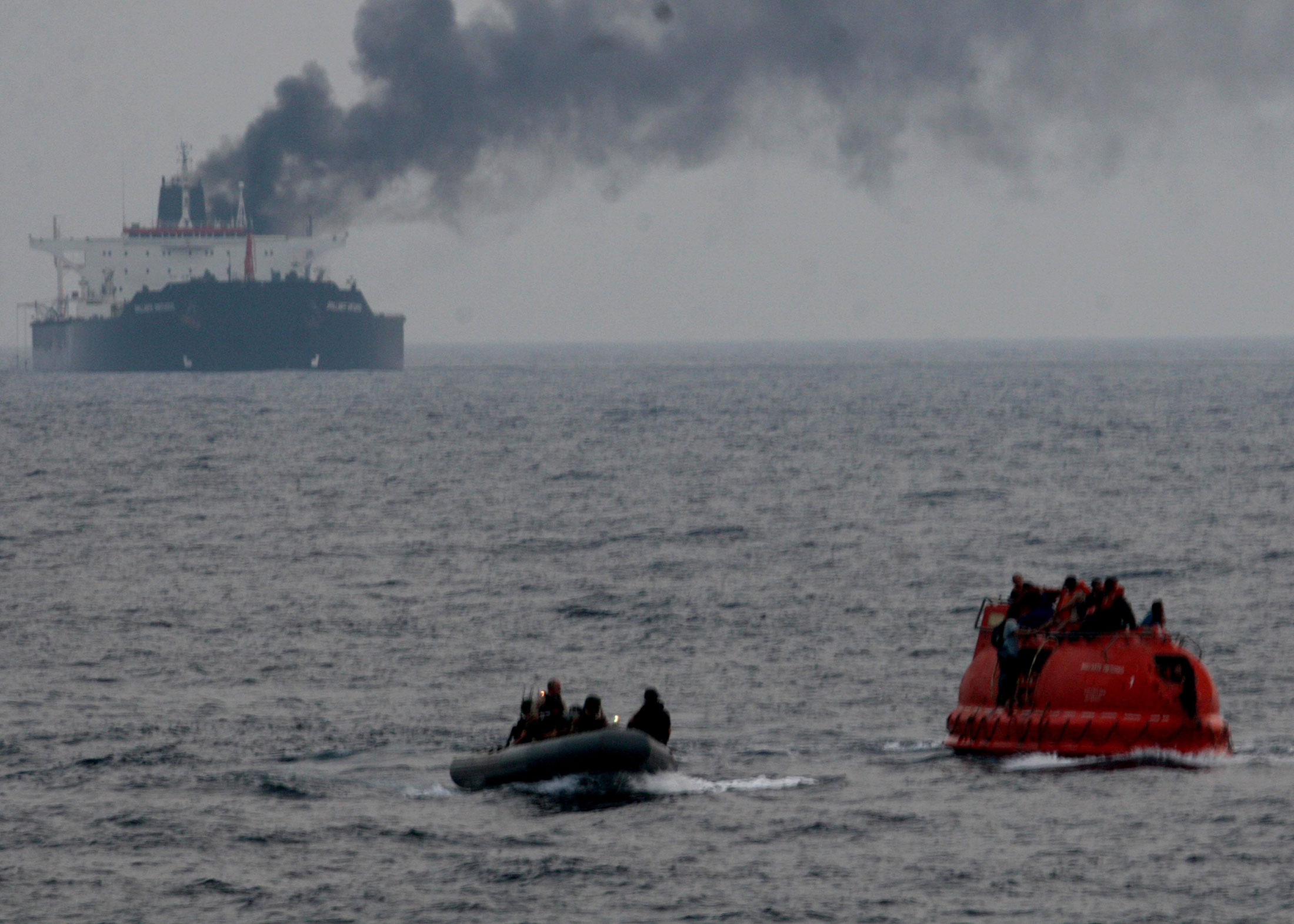 美国海军水手于2011年7月6日营救了Brillante Virtuoso的船员。摄影师:Raynald Lenieux/美国海军维尔和康纳开始相信,在Brillante号船上发生了一场精心策划的阴谋 —— 或许是航运业史上最大胆的骗局。他们坚信船东伊利奥普洛斯雇佣了假海盗袭击并焚烧他的船,以触发巨额保险赔偿,就像一个负债累累的酒吧老板可能点燃一根火柴来逃避他失败的生意,手里揣着现金。但他们找不到什么具体证据,也没有直接的目击者。有一次,保险公司担心与客户公开争执的形象问题,曾认真考虑与伊利奥普洛斯和解。维尔和康纳希望X射线能够彻底改变他们的计算。