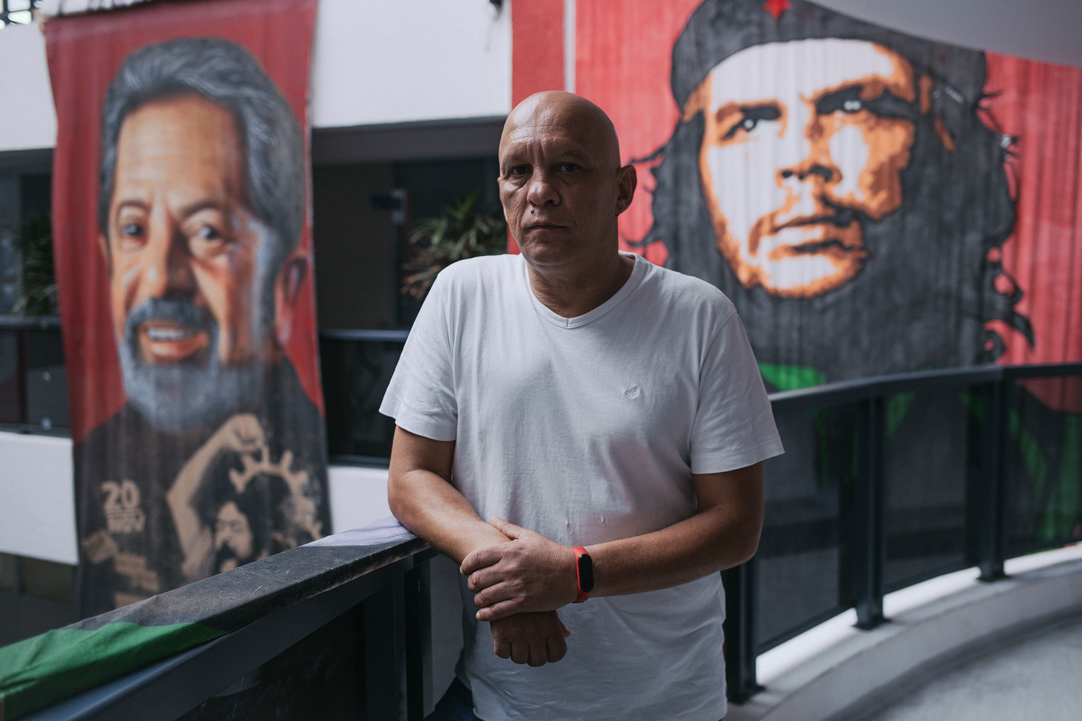 莫伊塞斯·塞勒吉斯,圣贝纳多地区金属工人工会主席,在工会总部。摄影师:图安·费尔南德斯,彭博商业周刊然而,桑切斯表示,梅赛德斯夜班的许多同事打算投票给博尔索纳罗。这位右翼民粹主义者设法在上次选举中席卷了圣贝纳多,这反映了2017年全国劳动改革之后工会影响力的下降。但在一场与当地成功人士对决的竞选中,他可能更难实现这一目标。