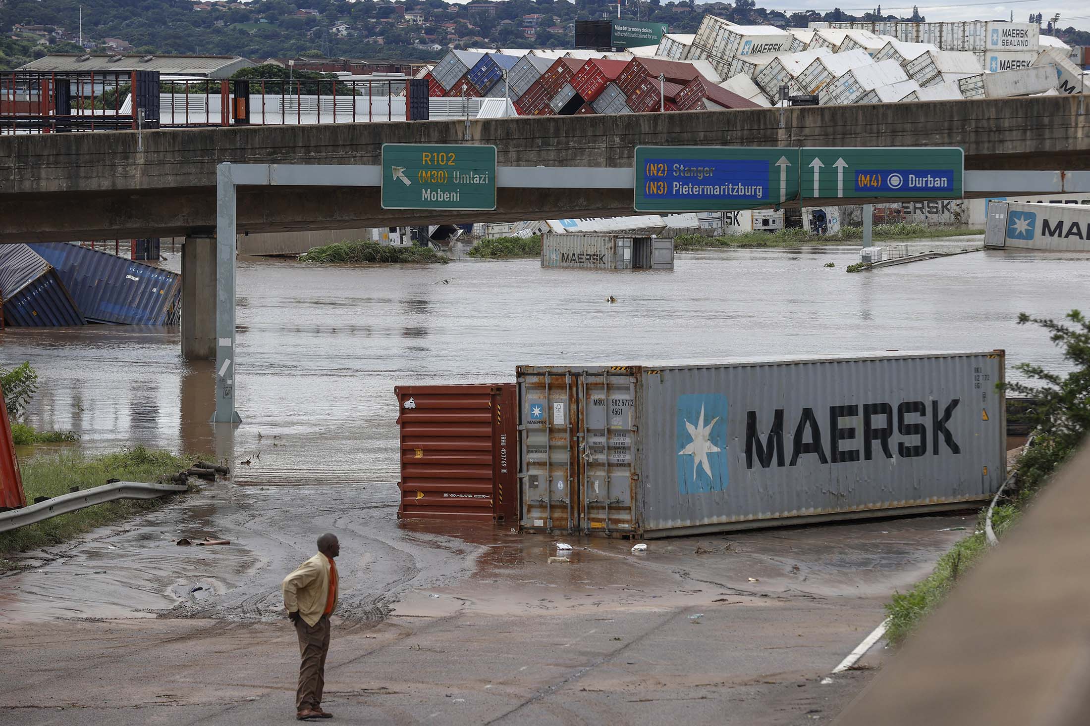 洪水混乱 | 南非宣布已造成至少341人死亡的东部夸祖鲁纳塔尔省的洪水为灾难,使政府能够动用资金协助重建。至少六十年来最严重的降雨引发了山体滑坡,在德班中断了港口作业,摧毁了道路并冲走了房屋。港口的损坏迫使航运巨头马士基关闭了其在港口的办公室。