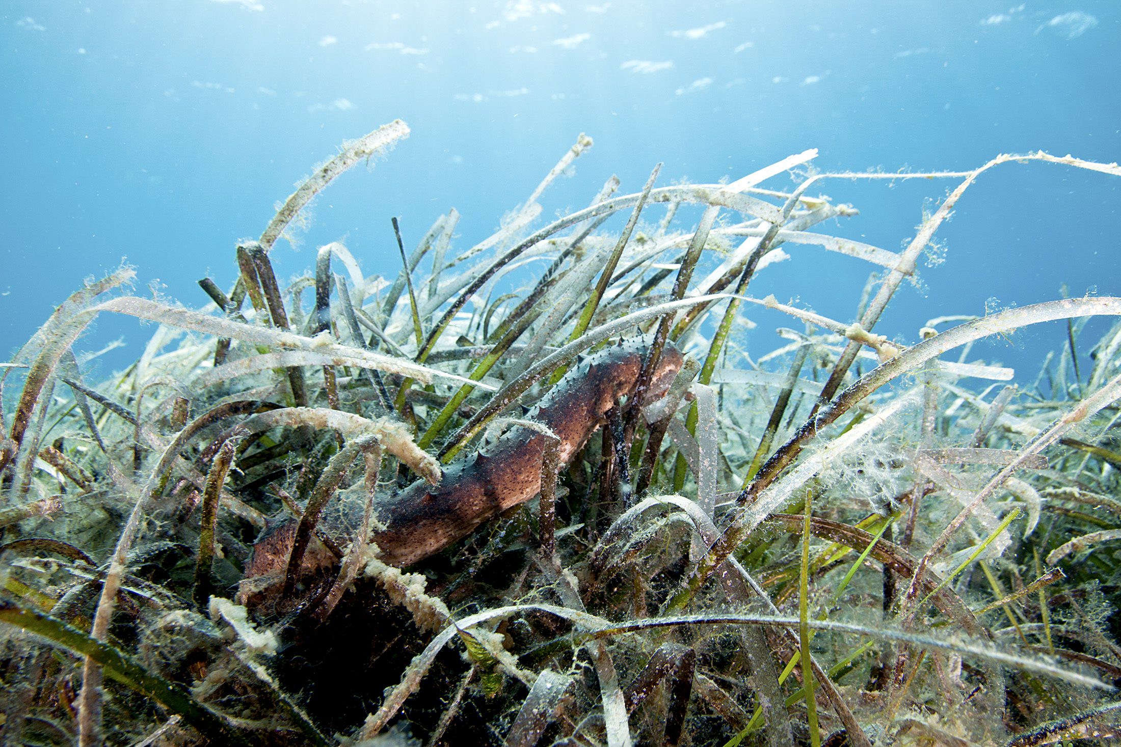 海草草地中的海参 Holothuria tubulosa。