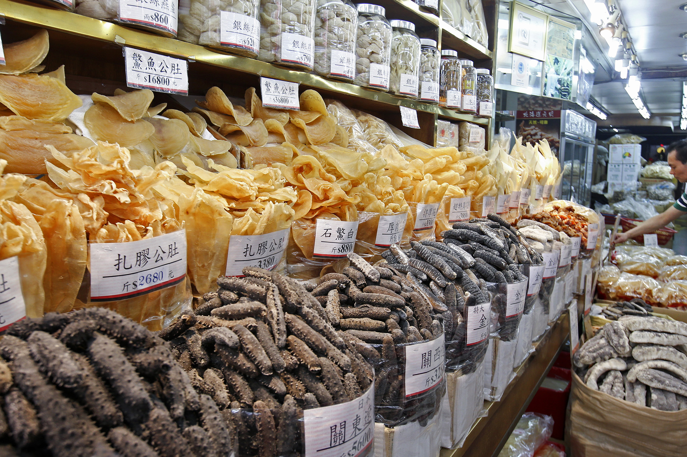中国和香港是世界上最大的海参买家,进口了全球价值约2.7亿美元的海参供应的70%以上。摄影师:David Wong/南华早报/盖蒂图片社在过去的十年里,当地意大利小偷,在土耳其和希腊走私者的帮助下,利用这一新的商机开始掠夺意大利南部海岸。
