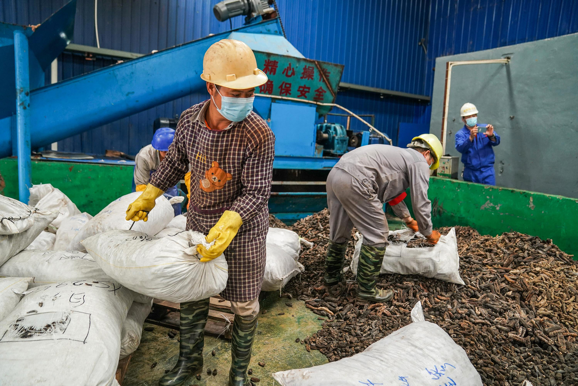 工人们准备销毁2020年4月16日中国南宁海关查获的走私海参。摄影师:陈冠彦/中国新闻社/盖蒂图片社从2018年开始,意大利农业、食品和林业政策部开始发布每年一次的法令,禁止在意大利捕捞海参。自首次批准以来,该法令每年仅仅被续签,朱尼表示,国家政府正以对海参缺乏研究为借口,不永久禁止对其的开采。